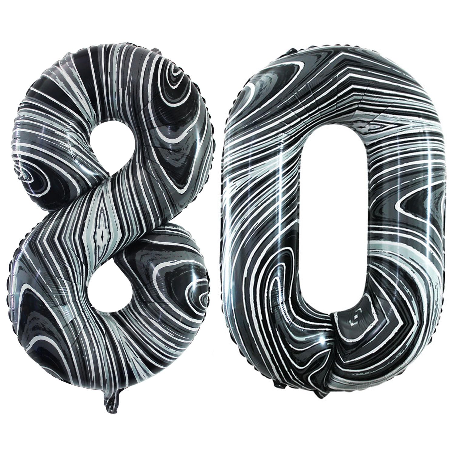 Goer Number 80 Balloons For 80Th Birthday Party Decorations,42 Inch Jumbo Foil Helium Balloons For 80Th Anniversary (Marble Black)