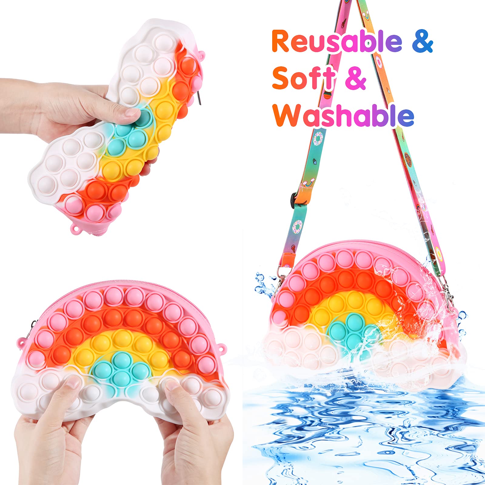 Goheyi Fidget Toy Shoulder Bag For Girls And Women, Rainbow Clouds Pop Shoulder Purse Fidget Handbags Easter Gifts For Girls, Valentines Sensory Silicone Fidget Toy For Adhd Anxiety Stress Relief