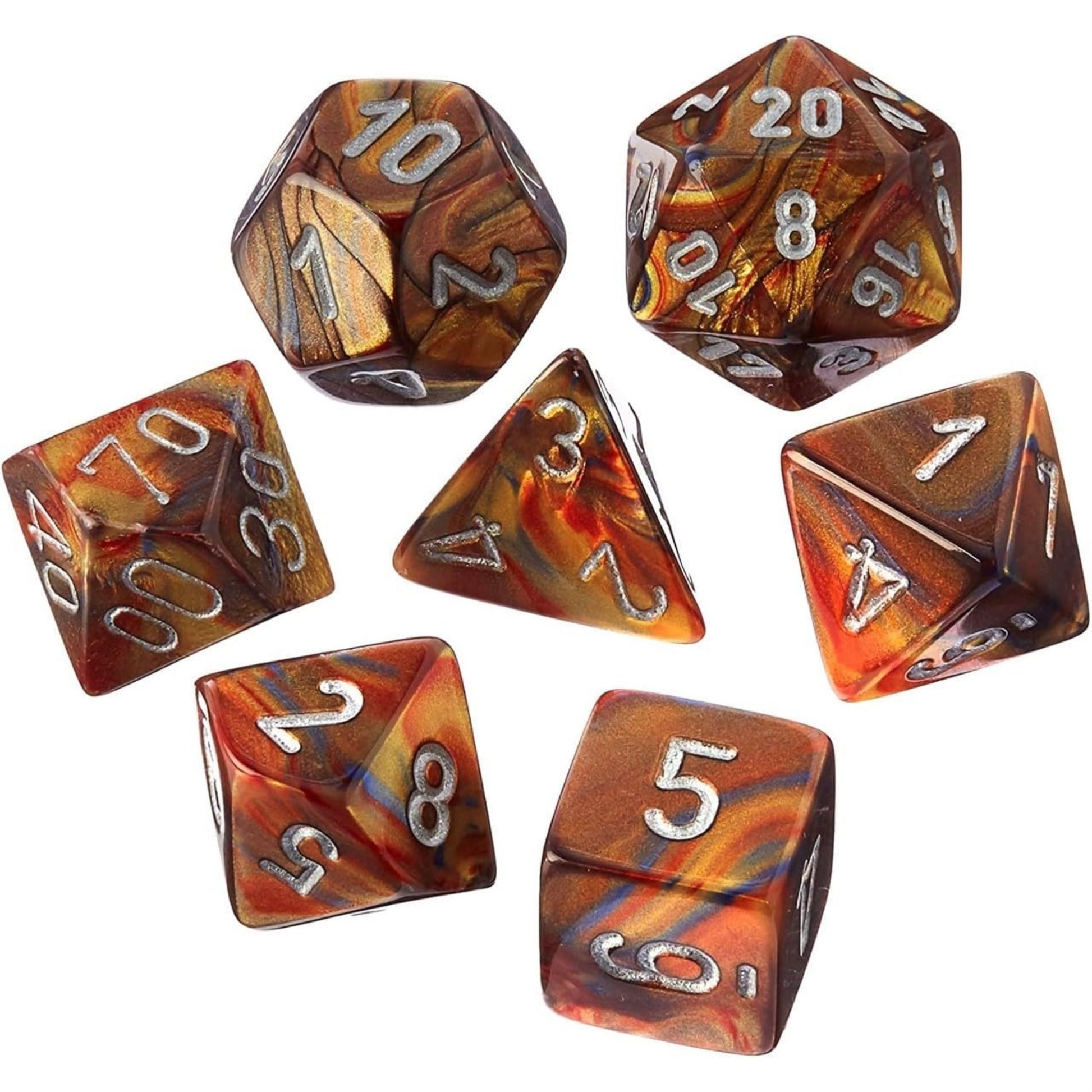 Gold Lustrous Mini Dice With Silver Numbers 10Mm (3/8In) Set Of 7 Chessex