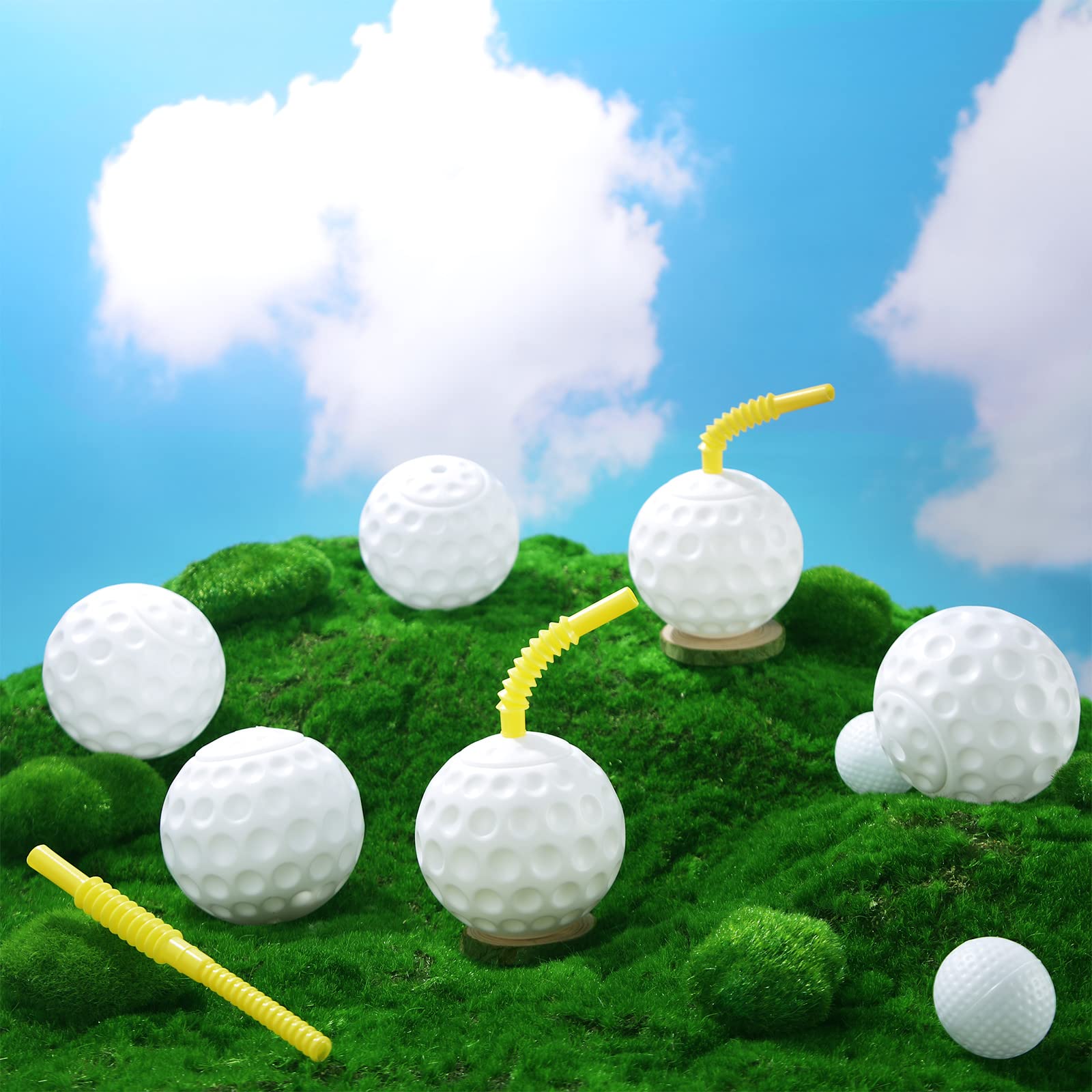 Golf Ball Cups with Lid and Straw 14 oz Golf Party Decorations Plastic Golf Party Favors Shaped Golf Decorations for Party Golf