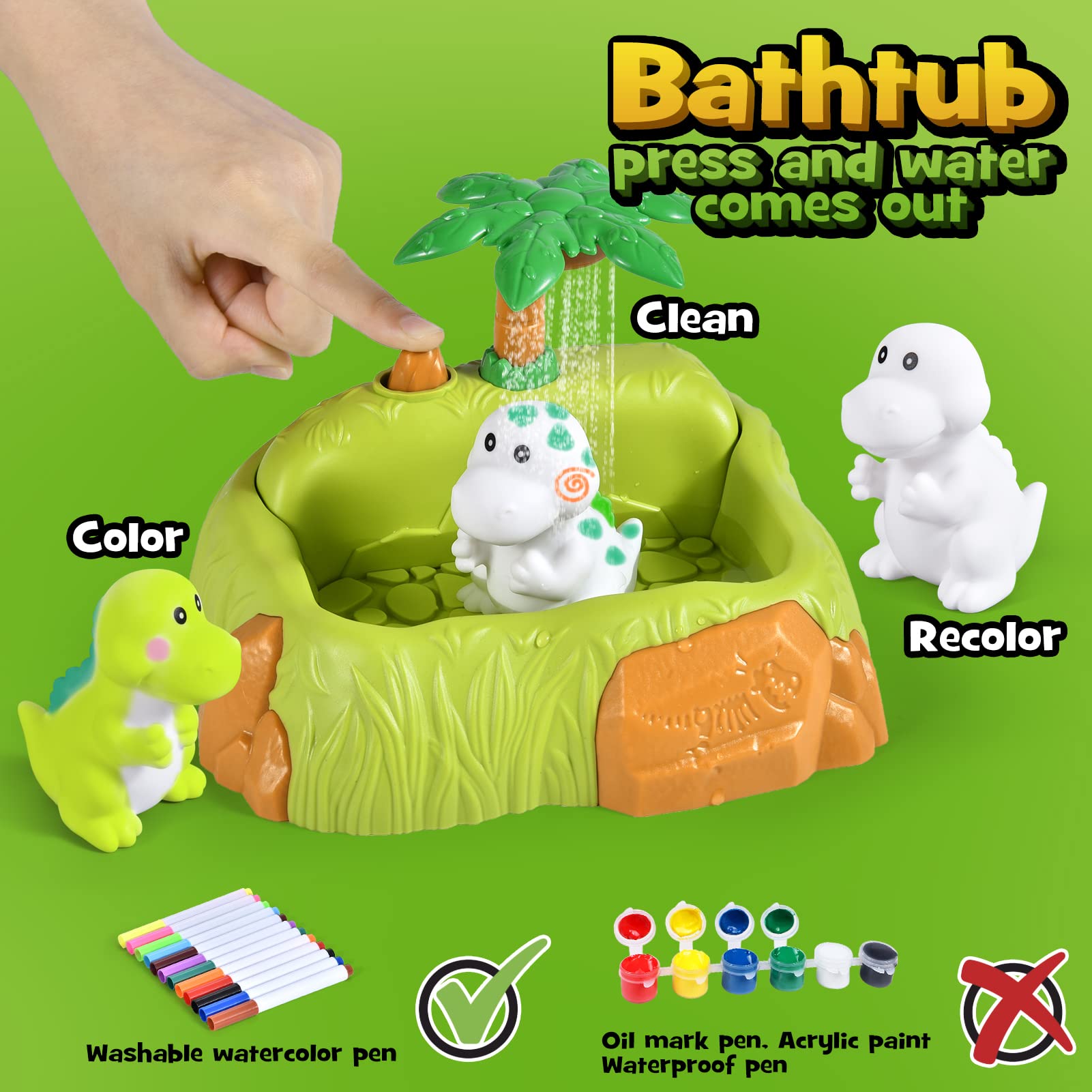 Golray Paint-Wash-Recolor Dinosaur Crafts Kit Painting Toy for Toddler, Bathtub, Washable Marker, Instruction, Dino Pet Art Acti