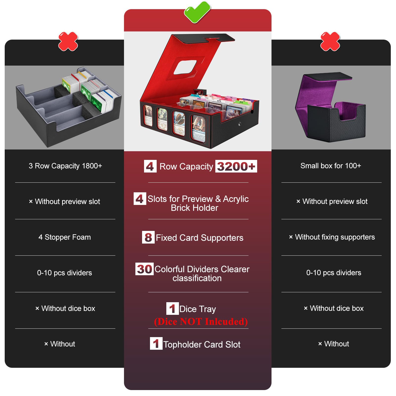 View compareGomyrod Card Storage Box 3200+ Mtg Deck Box With 30 Colorful Divider, Commander Trading Card Cases With Portable Handle & Viewin