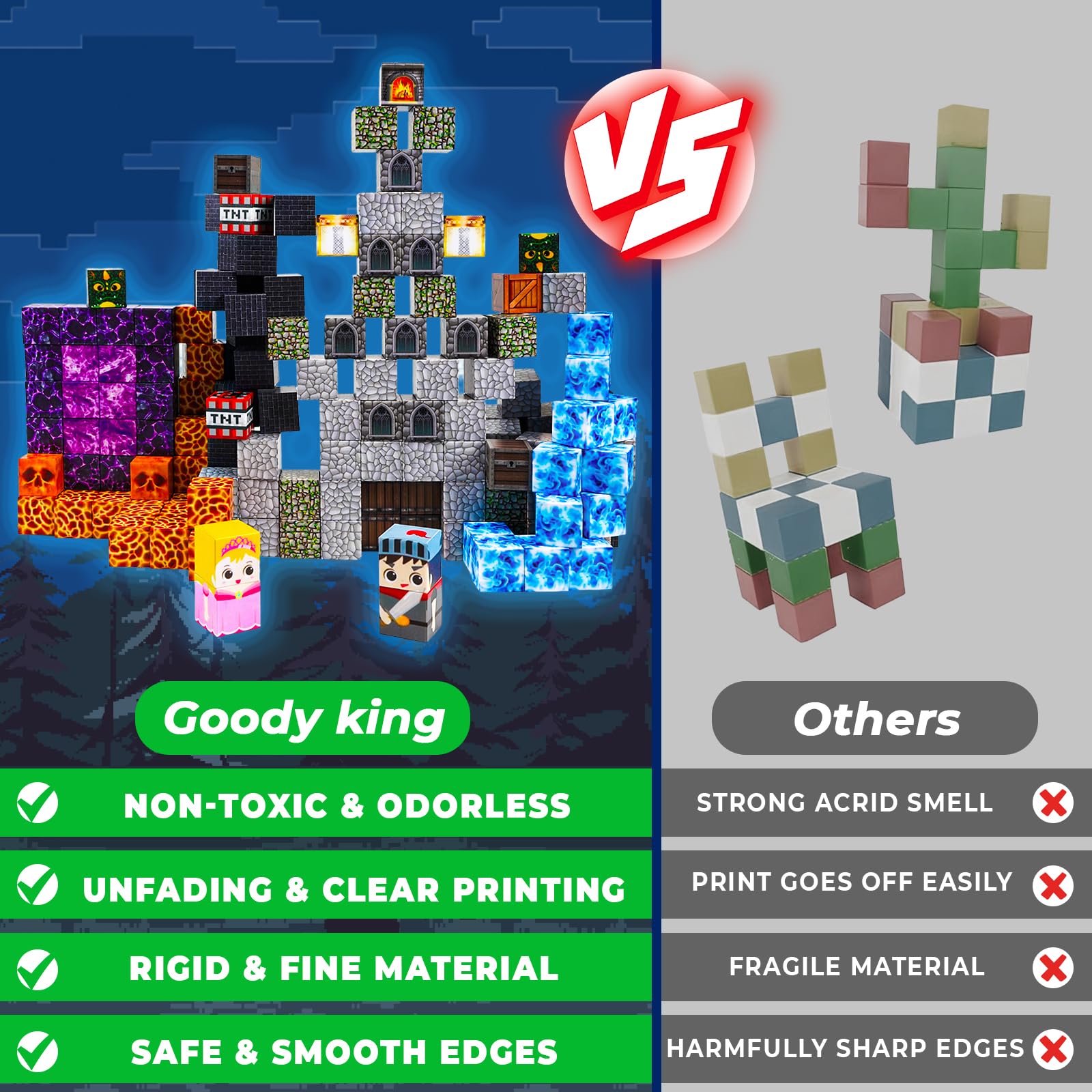 - Q: What are the educational benefits of playing with these magnetic blocks? A: Playing with Goody King Magnetic Building Blocks promotes STEM learning by enhancing creativity, problem-solving skills, hand-eye coordination, and motor skills in young children.