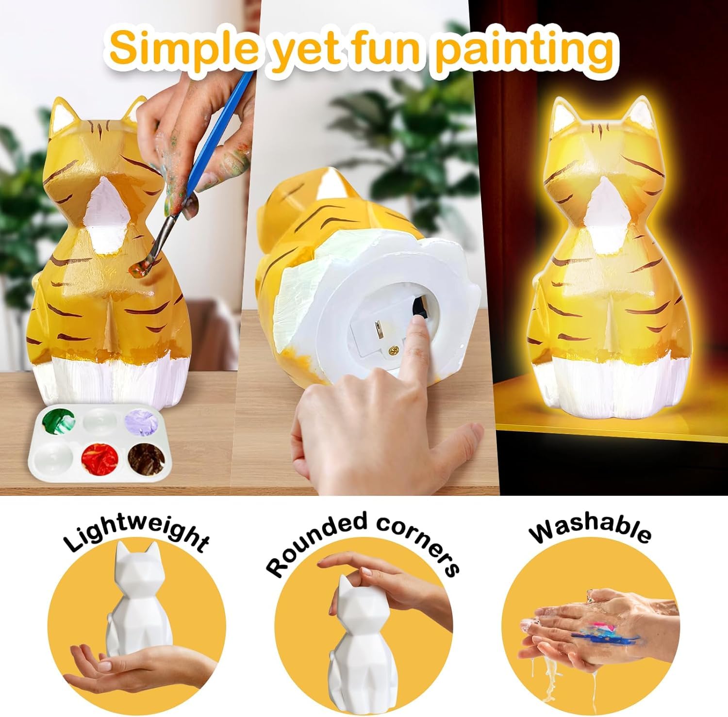 Goodyking Paint Your Own Cat Lamp Kit, Diy Warm Cat Night Light, Painting Kit For Kids Ages 8-12, Arts & Crafts Kit, Room Decoration, Birthday Gift For Kids Girls Boys Ages 3 4 5 6 7 8 9 10 11 12+
