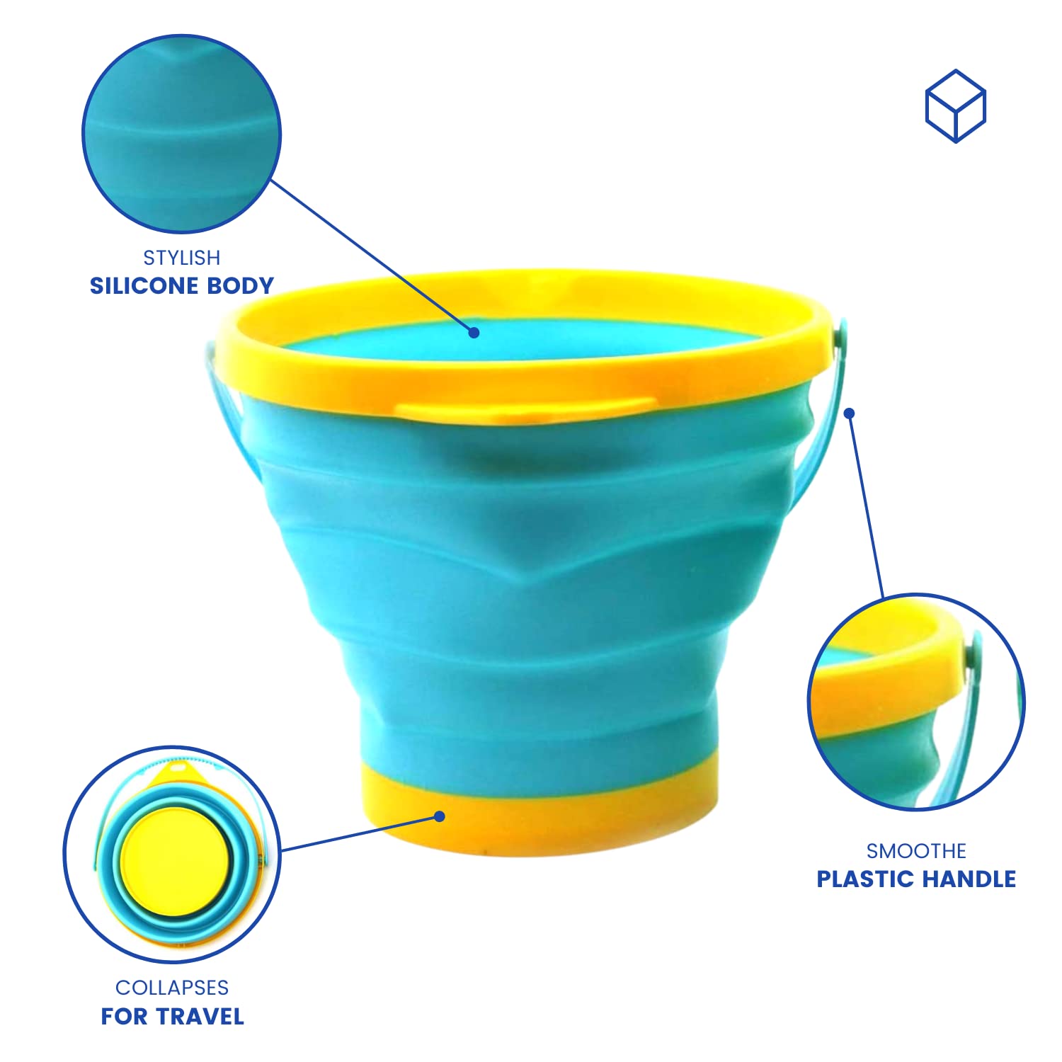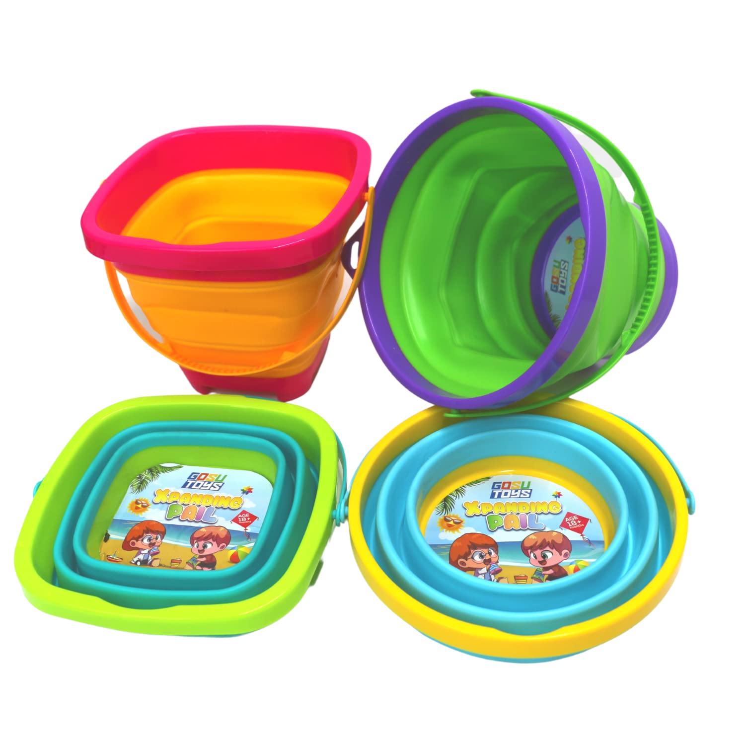 Gosu Toys Foldable Sand Bucket Expandable Sand Pail Square and Circle for Beach Multi Purpose for Kids Collapsible Silicone Buck