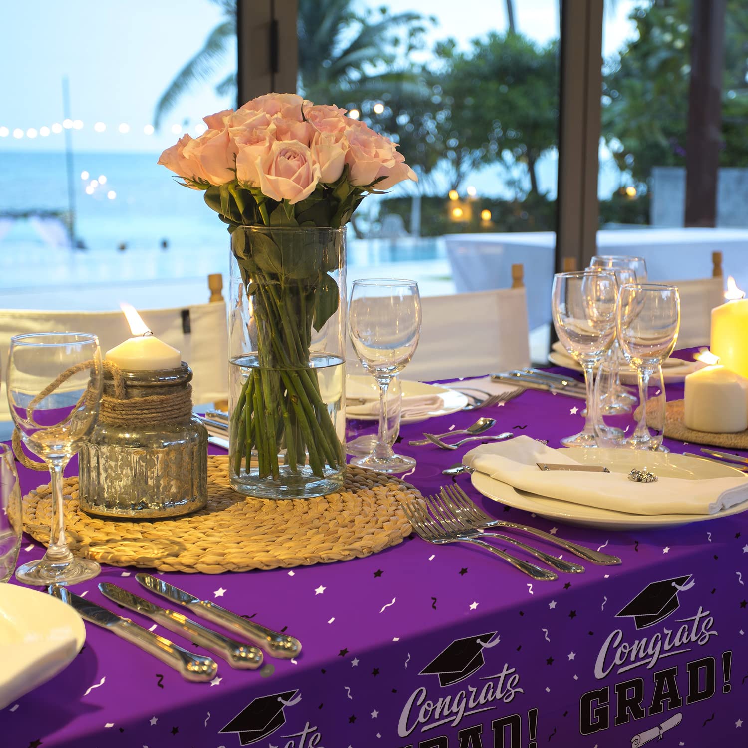 Graduation Party Decorations, Gongrats Grad Tablecover for Graduation Party Supplies, 3 pcs Purple Table Cloths, 54x108