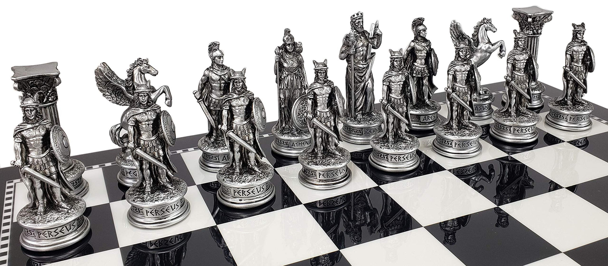 - Q: What is the total weight of the chess set? A: The total weight of the Zeus vs Poseidon chess set is approximately 2 pounds and 1 ounce. Please note that weights may slightly vary with each set.
