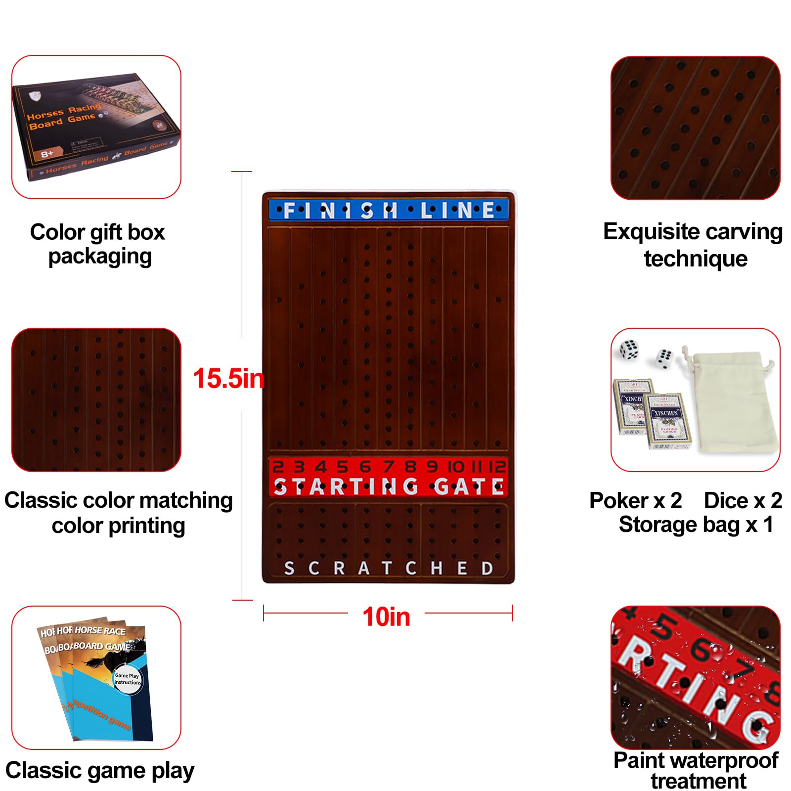 View compareGrhonior Original Horse Racing Board Game with 11 Luxurious Durable Metal Horses Full Size Solid Wood Horse Race Board Game Set