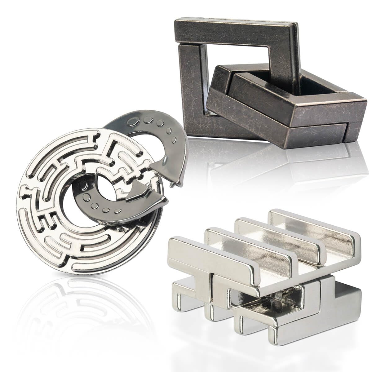 Gvkes 3Pcs Fun Metal Brain Teaser Puzzle Games - Adults Mind 3D Toys -Teens Iq Insight Challenge - Educational Gift For Ages 12+
