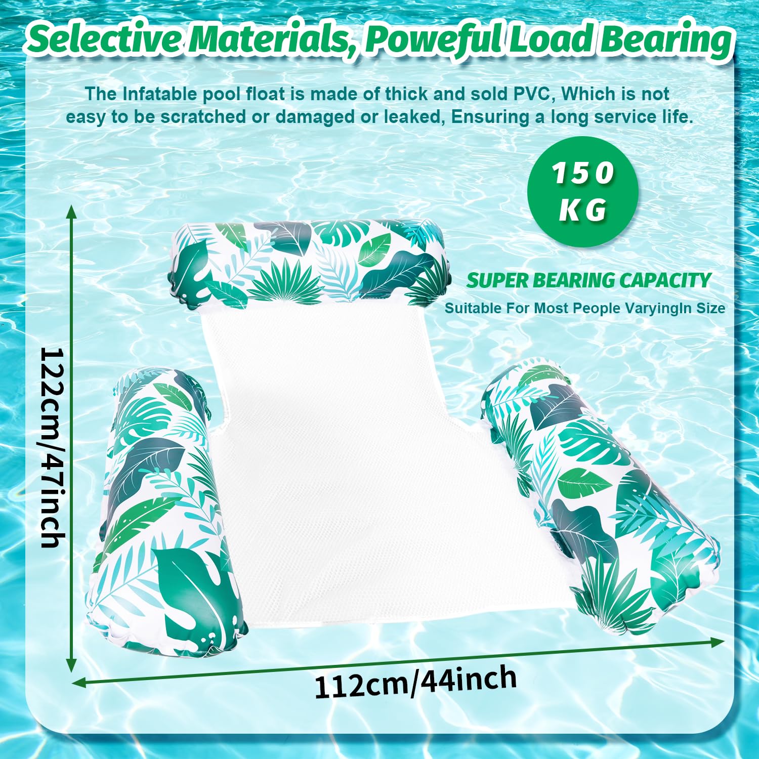 ?? [ Multi-Functional Pool Toy ] - Our 4-in-1 design allows you to use this inflatable air mattress as a hck deck chair drifter or sports saddle. Perfect for enjoying the sun and relaxation in the water. Get ready to make the most out of your summer! | ?? [ Ergonomic and Eco-Friendly Design ] - Made of well-made eco-friendly PVC our pool toy has soft buoyancy cushions a fixed mesh center seat and a comfortable armchair to ensure hours of relaxation. With a load capacity of up to 150 kg it's designed to last. | ?? [ Comfortable and Durable ] - Our water hck features a soft and comfortable mesh with inflatable cushions on both ends. Unlike traditional loungers it has air cushions for resting your hands and letting you float freely. It is durable dries quickly and will provide long-lasting comfort. | ?? [ Easy to Inflate and Store ] - Our water hck is foldable compact and easy to transport. Quick to inflate and deflate simply roll it up for storage or easy portability. Suitable for swimming pools beaches lakes and vacations. Please note it may have a slight smell upon arrival but will dissipate with proper washing and ventilation. | ?? [ Perfect for Summer Fun ] - The water hck floating bed is the perfect addition to any summer fun day. Great for partners family and friends to float chat and sleep together. Recommended for ages 15 years and up children must be supervised by an mature-themed. Get yours today and enjoy the ultimate pool experience!
