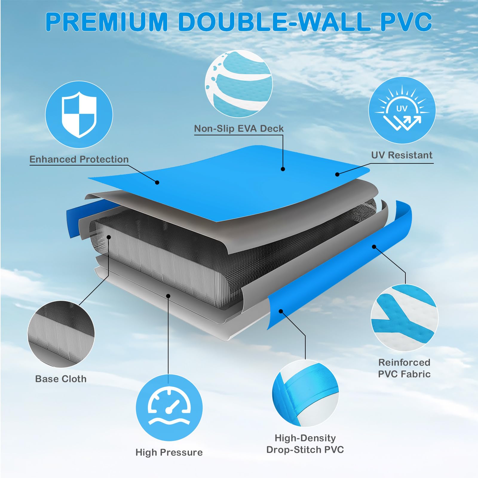 Key Features:- Durable Material: Made from thickened drop-stitch PVC and EVA for superior strength and longevity.