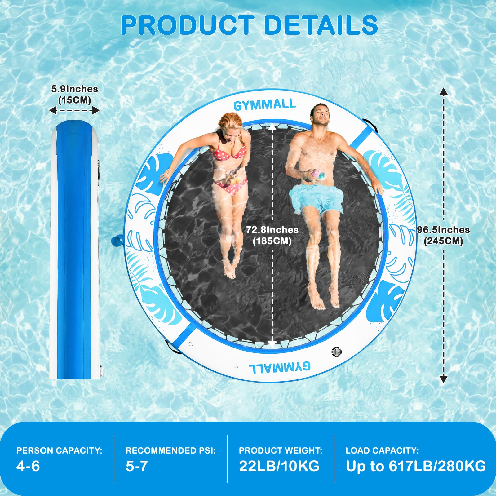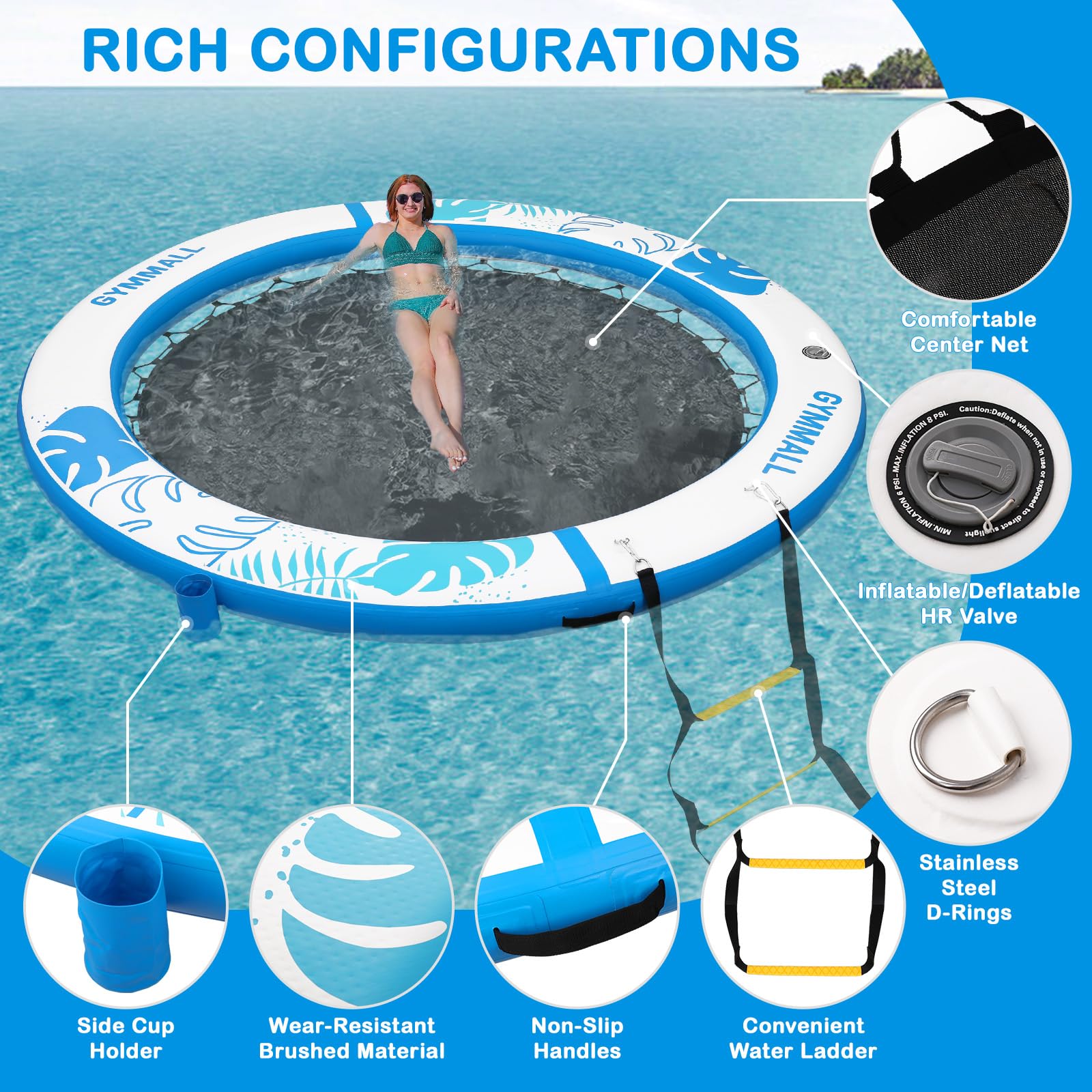 - Q: Can children and pets use the inflatable dock safely? A: Absolutely! The GYMMALL Water Hammock is equipped with a detachable water ladder, allowing easy access for children and pets to climb aboard safely.
