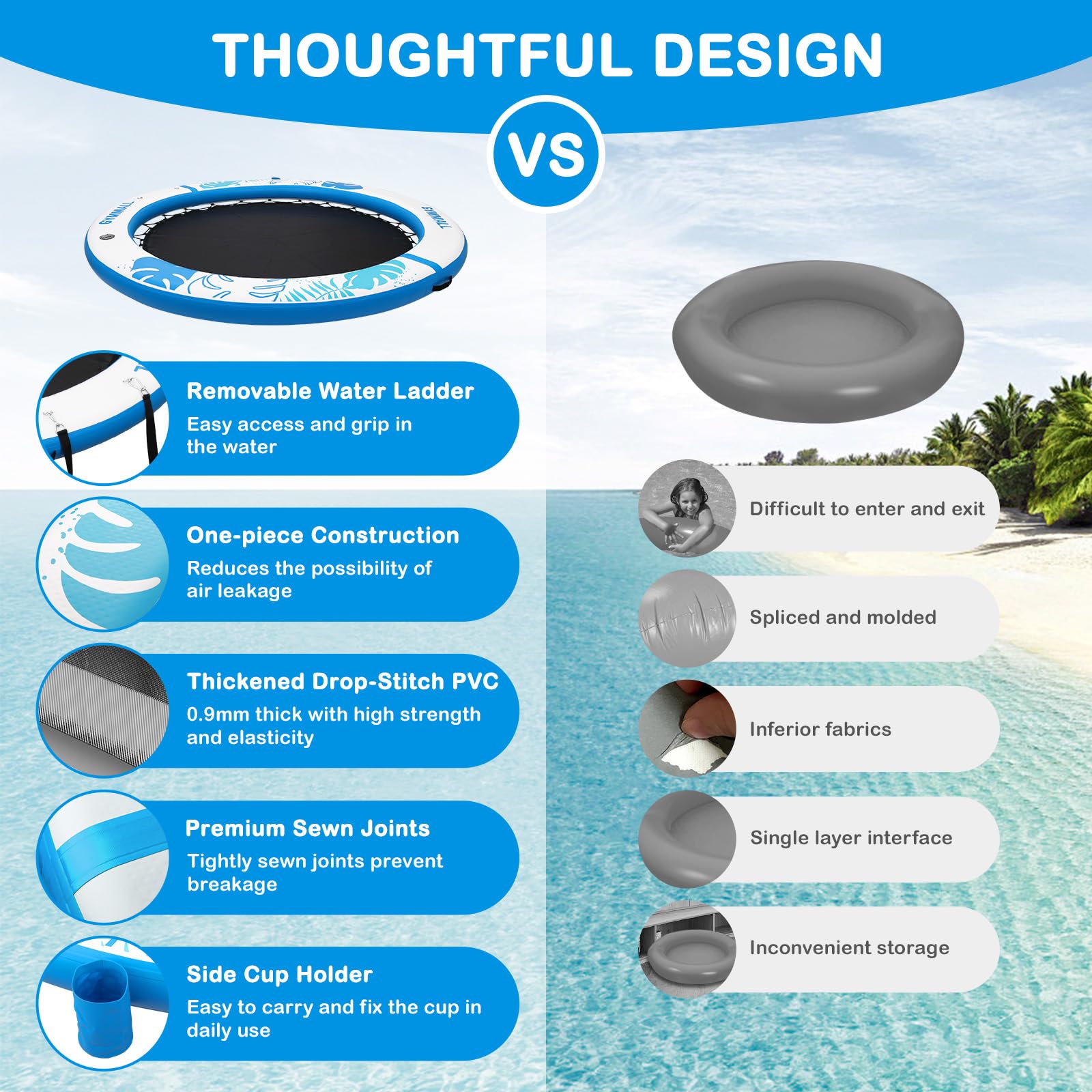 The GYMMALL Blue White Inflatable Tanning Pool Lounger is an excellent choice for anyone seeking a reliable and comfortable water accessory. Its multi-functional design and thoughtful features make it suitable for families, friends, and water enthusiasts looking to enhance their aquatic experiences. Enjoy a premium lounging experience while ensuring safety and convenience for all users.