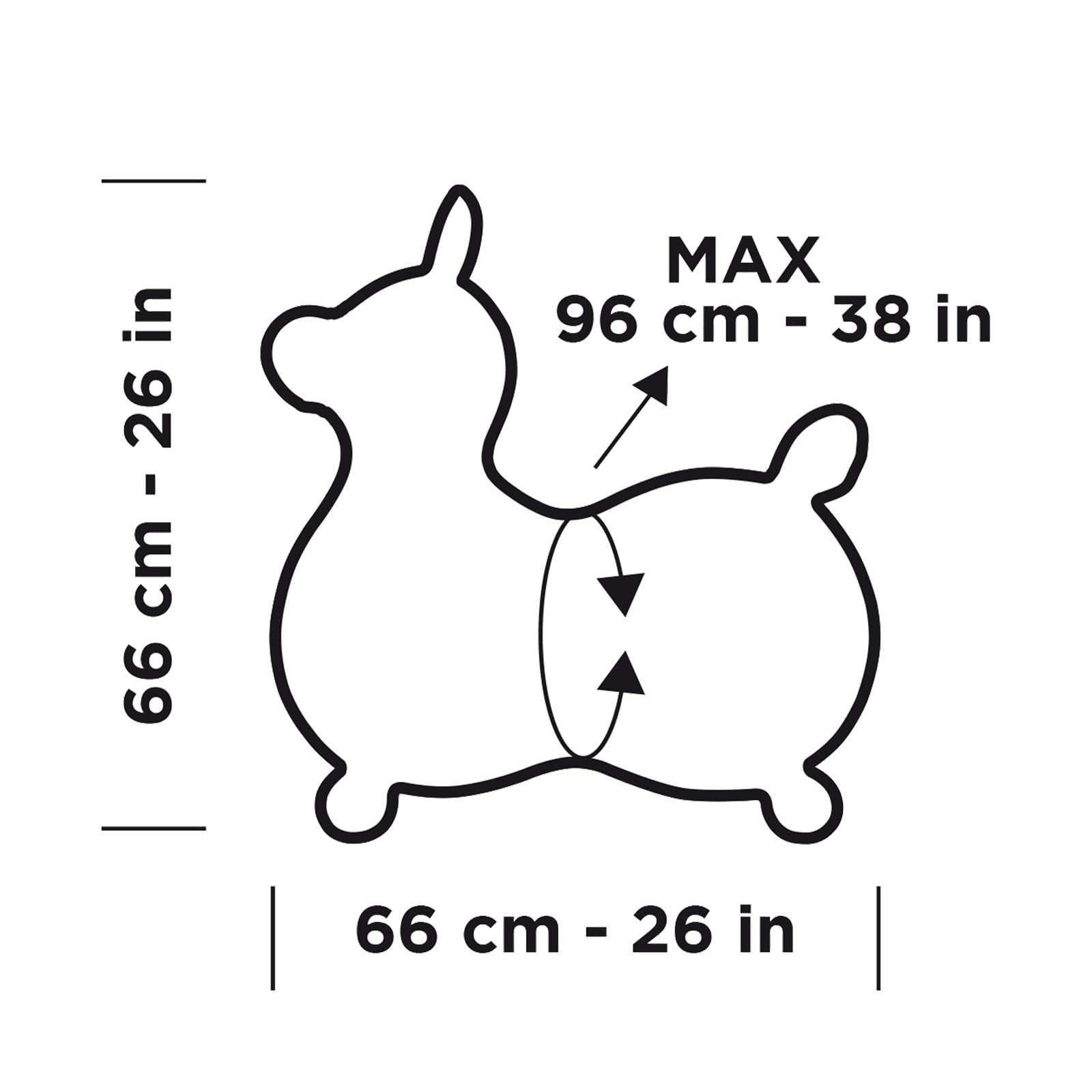 - Q: What are the dimensions and weight of the Gymnic Rody Max Bounce Horse? A: The Gymnic Rody Max Bounce Horse measures 66 x 66 cm and weighs 7.72 lbs, making it a manageable size for children to handle and play with.