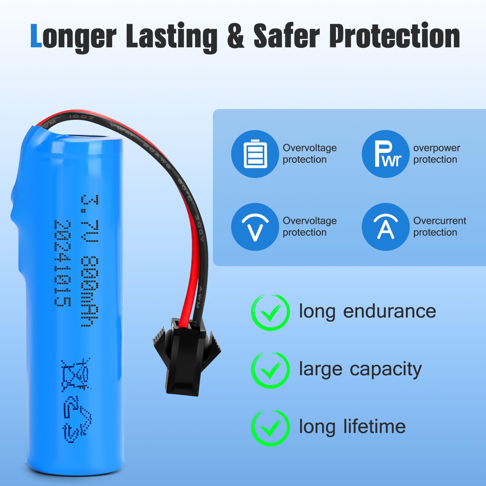 HaiNXC 2 Pack DC 3.7V 800mAh Li-ion Rechargeable Battery for Toy Car, Double Sided RC Stunt Car, Small RC Boat, Tumbling Amphibi
