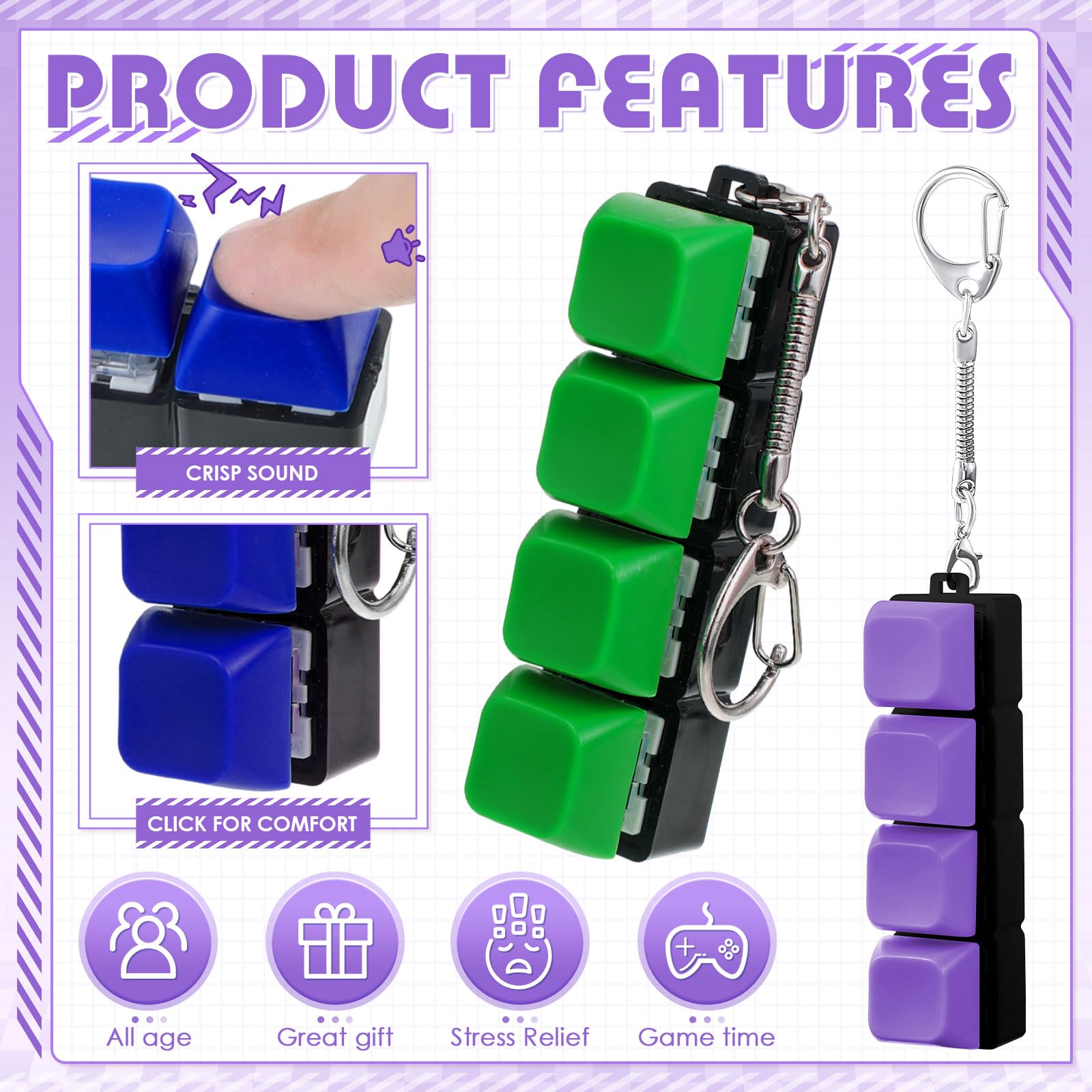 Halloscume 4 Pcs Keyboard mature-themed Fidget Toy Clicker Toy 4-in-1 Keyboard Fidget Keychain Cube Mechanical Key Button Clicker Stress Relief Gift for Office School Home to Pass The Time (Solid Colors)