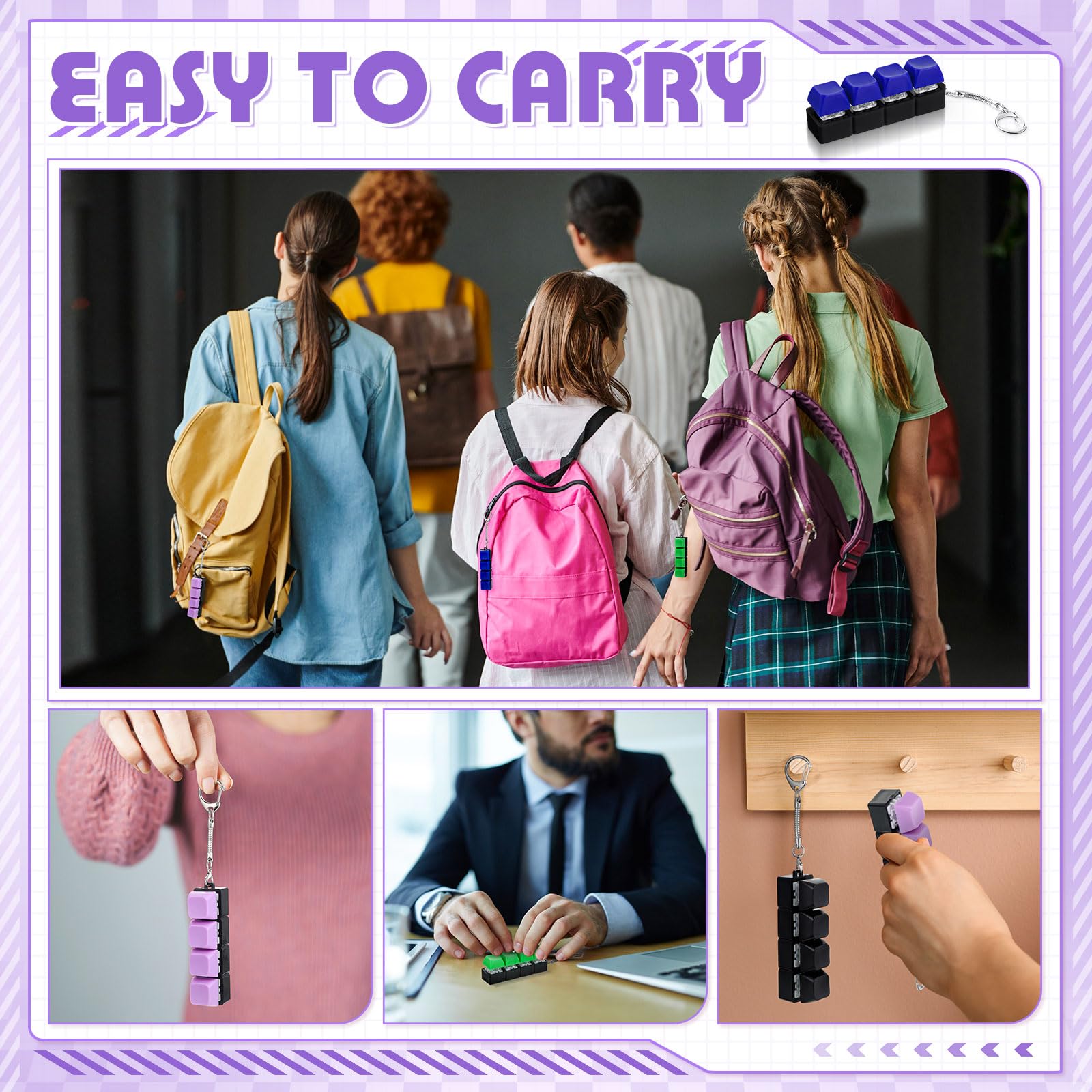 Features: Get 4 pcs Keyboard Fidget Keychain. Multiple keychains can be shared with family and friends. Mix and match them in various colors as you like to show your unique fashion charm. The sound and bounce of the keyboard mature-themed fidget toy can help you relieve stress and is mini for easy carrying to many places like office school travel Specifications: Material: Keycap: ABS material Bottom: PC material Color: Keycaps: blue green purple and black Bottom: black Size: Keyboard about 7.6 x 2 x 2.7cm / 2.99 x 0.79 x 1.06 inches. Chain about 2.75 inches / 7cm Weight: 26g Package includes: 4 x Keyboard Fidget Keychain Notes: Manual measurement please allow slight errors on size. The color may exist a slight difference due to different screen displays