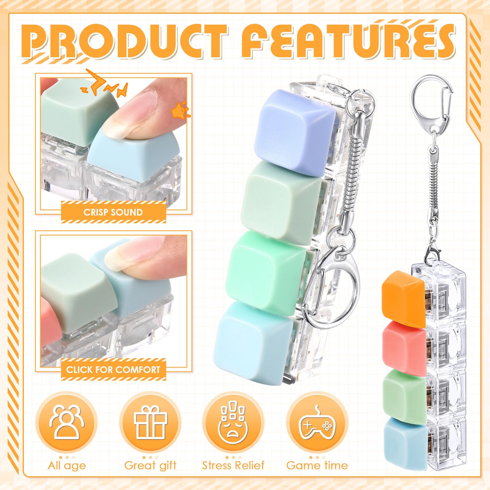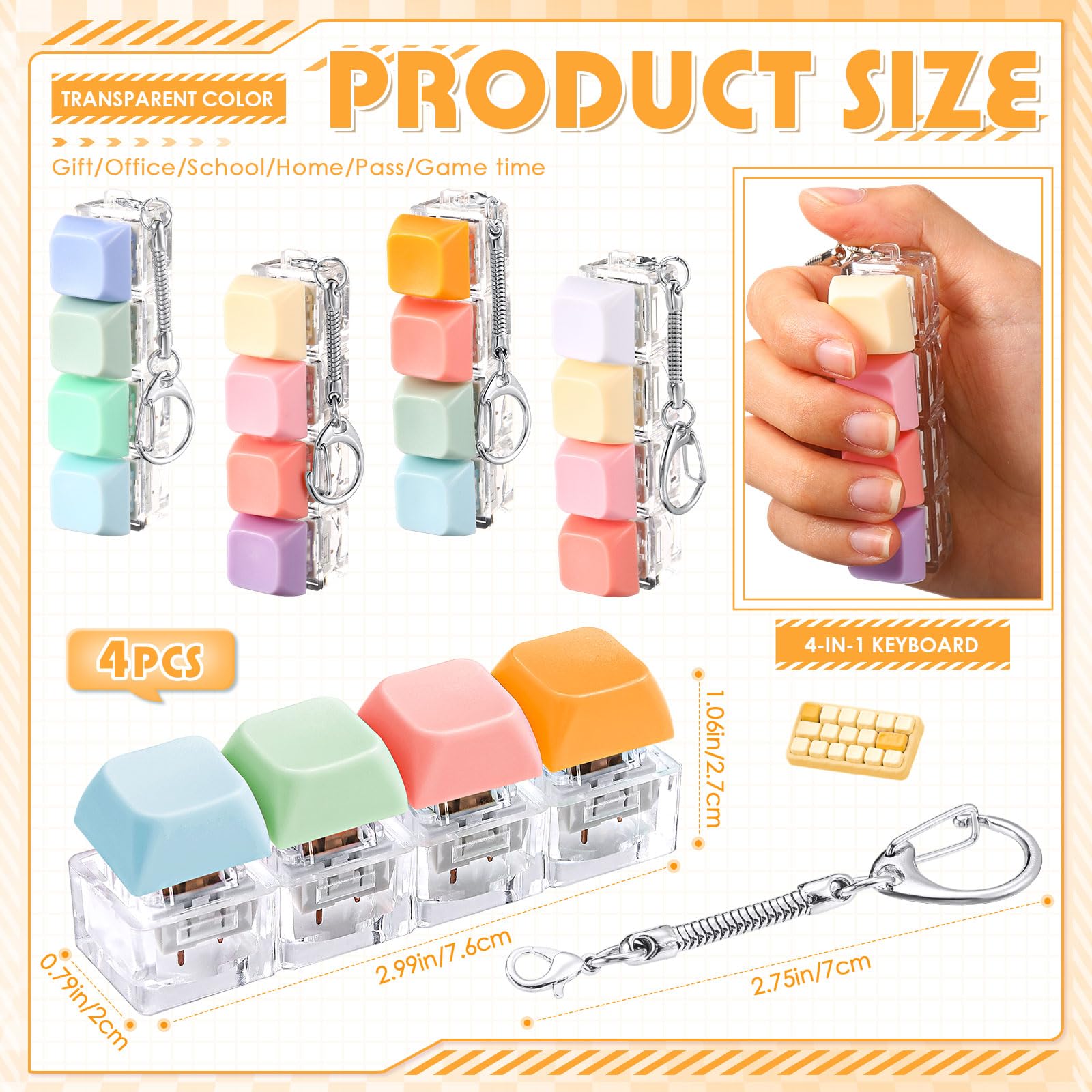 Halloscume 4 Pcs Keyboard mature-themed Fidget Toy Clicker Toy 4-in-1 Keyboard Fidget Keychain Cube Mechanical Key Button Clicker Stress Relief Gift for Office School Home to Pass the Time (Watercolor Colors)