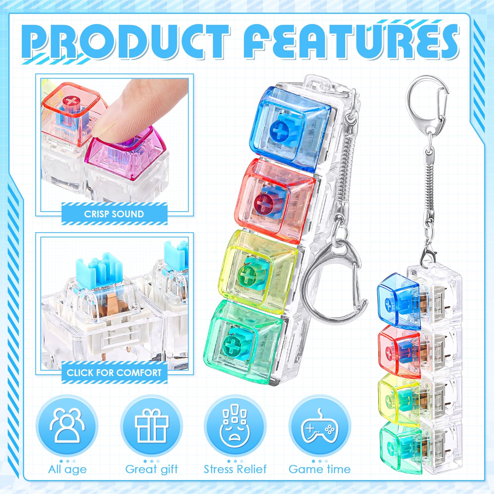 Halloscume 4 Pcs Keyboard mature-themed Fidget Toy Clicker Toy 4-in-1 Keyboard Fidget Keychain Cube Mechanical Key Button Clicker Stress Relief Gift for Office School Home to Pass The Time(Transparent Color)