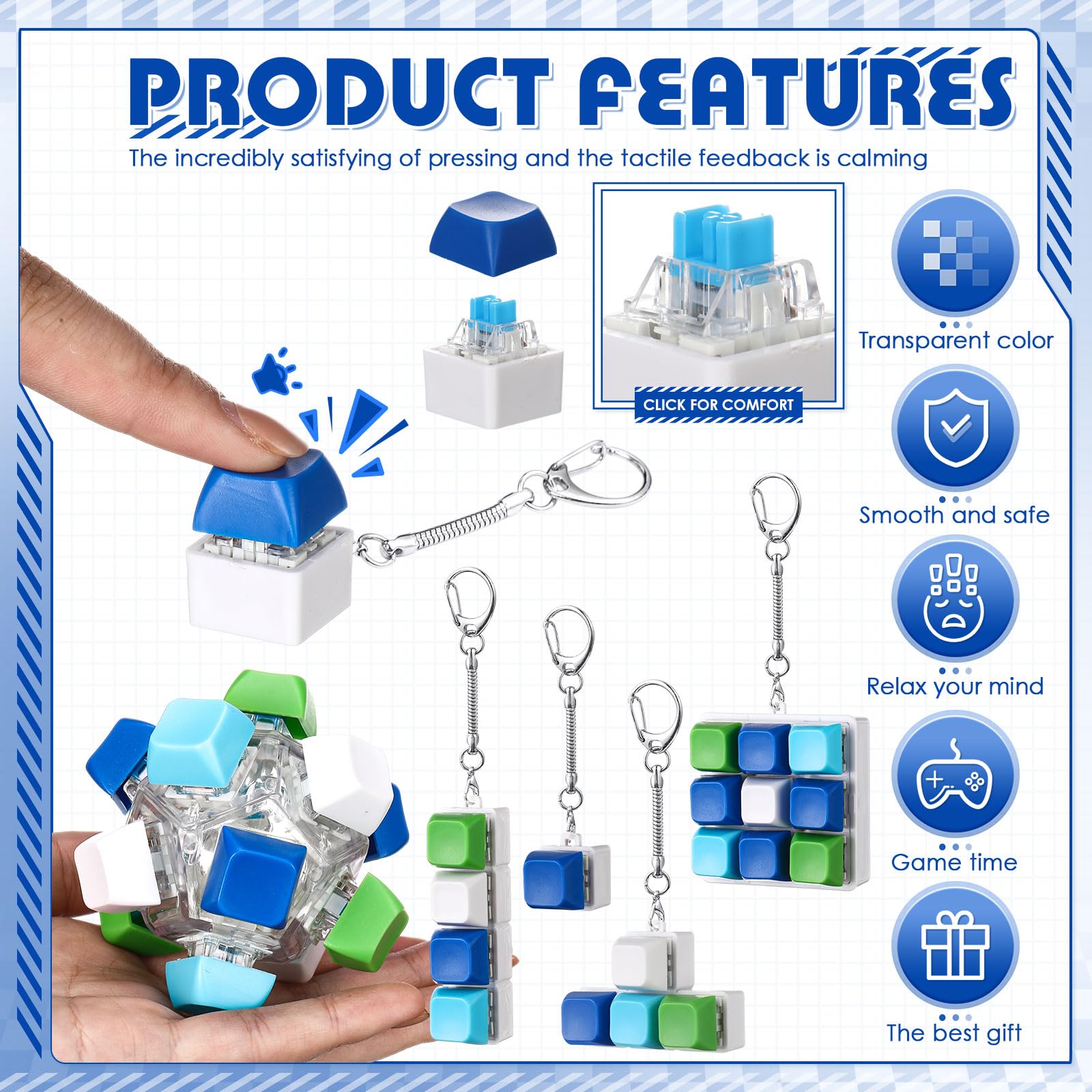 Halloscume 5 Pcs Keyboard mature-themed Fidget Toy Clicker Toy in 5 Styles Keyboard Fidget Keychain Cube Mechanical Key Button Clicker Stress Relief Gift for Office Home Pass Time(Blue Green)