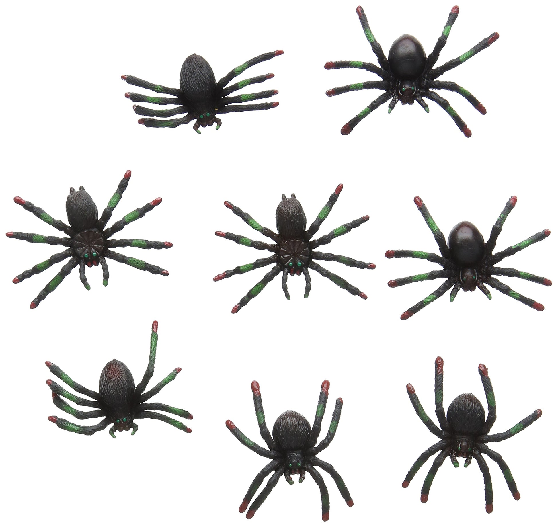 - Q: How many spiders are included in a pack? A: The pack includes 8 assorted plastic spiders, providing a variety of creepy designs to enhance your Halloween festivities.