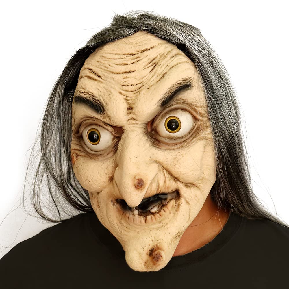 This detailed and realistic witch latex mask with a wig can be worn as a scary Halloween costume mask, also a great choice of Masquerade Parties, Costume Parties, Carnival, Christmas, Easter, New Year's Eve Party, etc. Also a PERFECT HALLOWEEN DECORATION for your garden yard, house. | The scary mask is made of high-quality naturel latex material, which is soft and docile. For the materila, you will smell latex odor not good when you first open the package, it