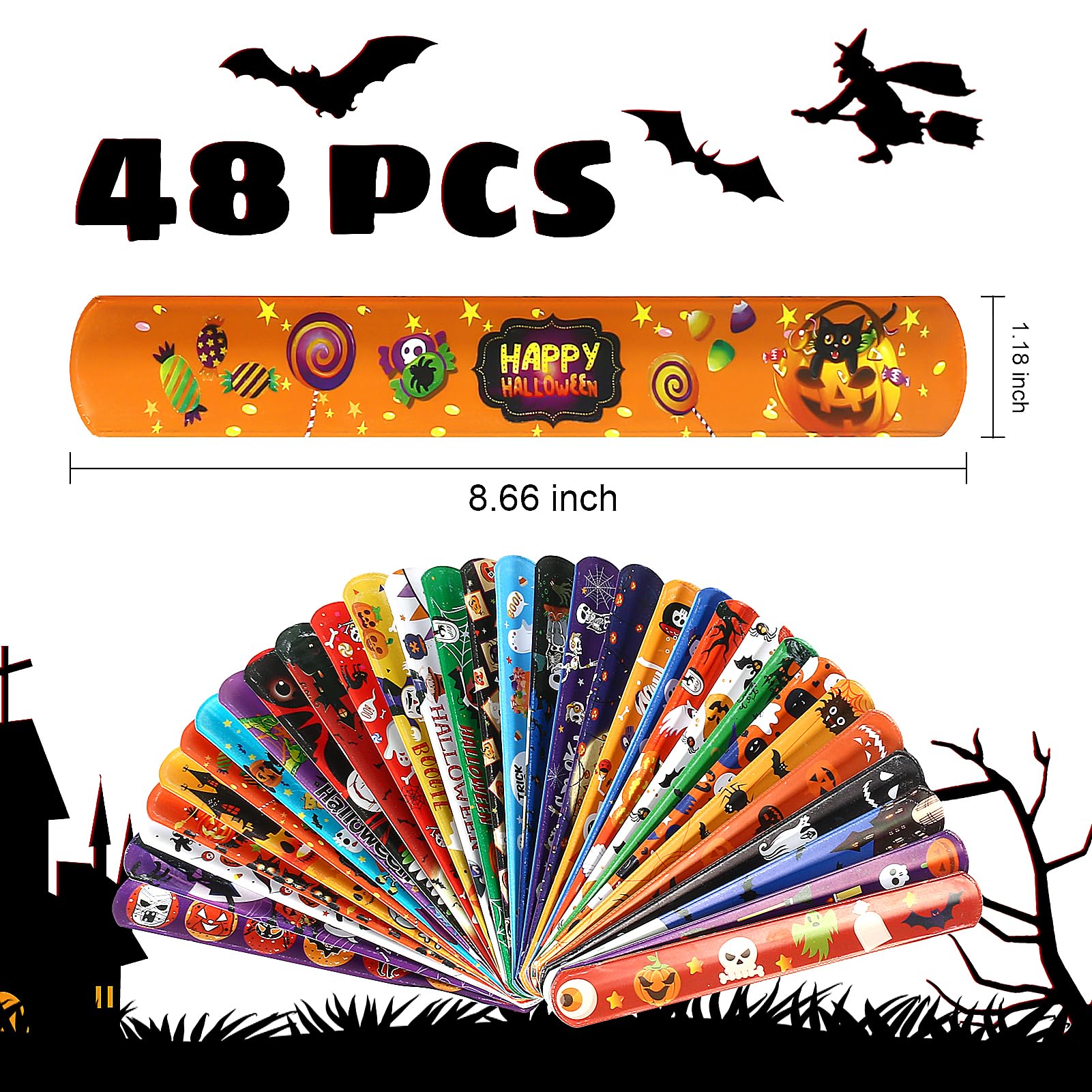 Halloween Slap Bracelet For Kids,48Pcs Halloween Party Favors, Halloween Decorations Gifts Bracelet Decorations Outdoor, Hallowe