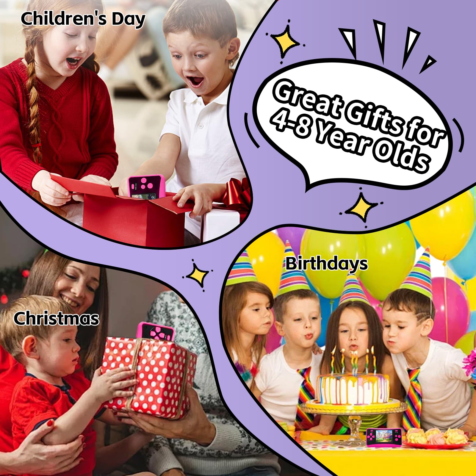 S4S Handheld Game for Kids Ages 4-8, Portable 142 Classic Mini Games 2.5'' LCD Screen Arcade Gaming System Birthday Xmas Present for Children-Rose