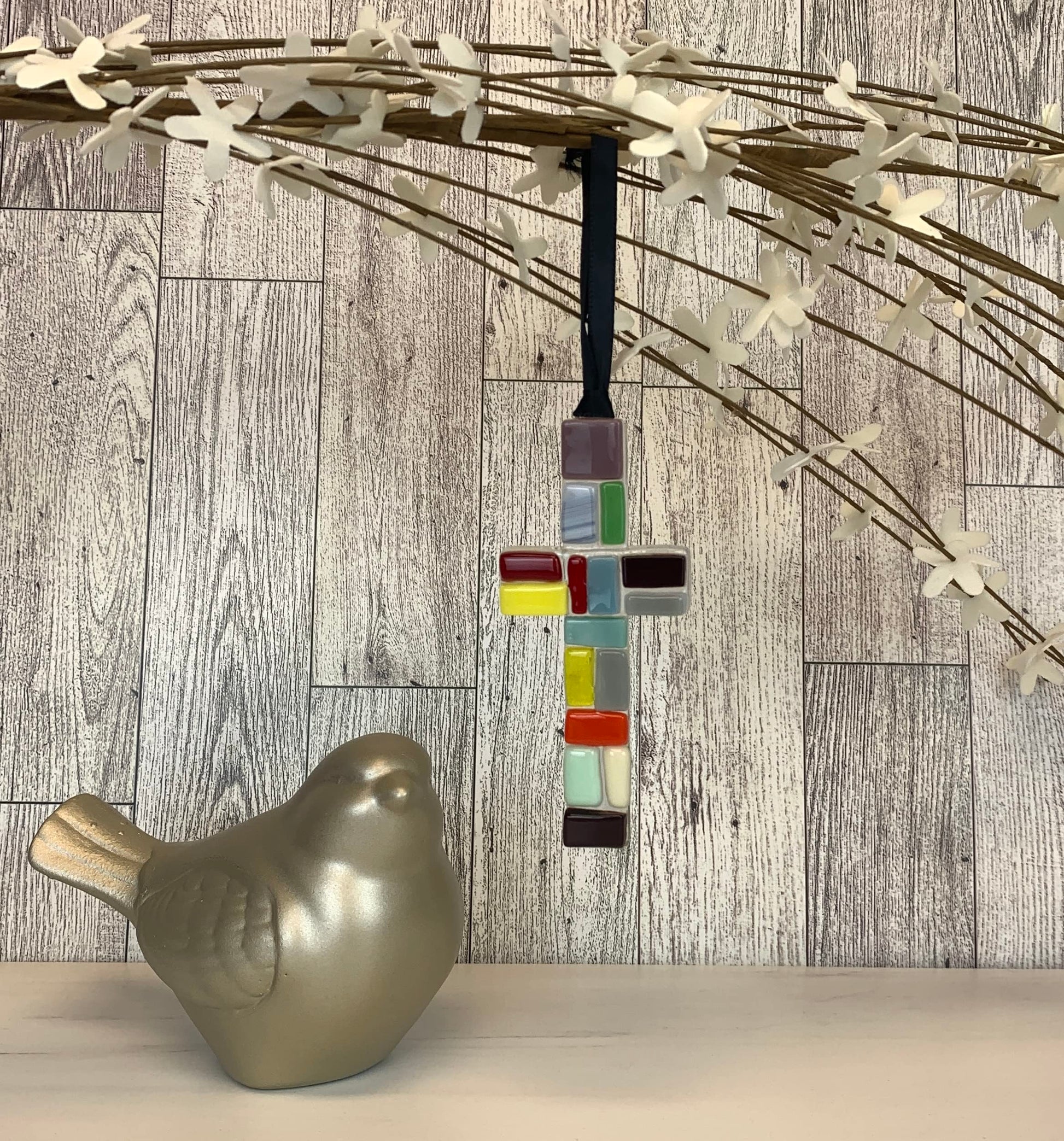 Handmade in USA Glass Cross With Courage Message - Get Well Soon Gift for Cancer Patients/Encouragement Gift for Hard Times/Misc