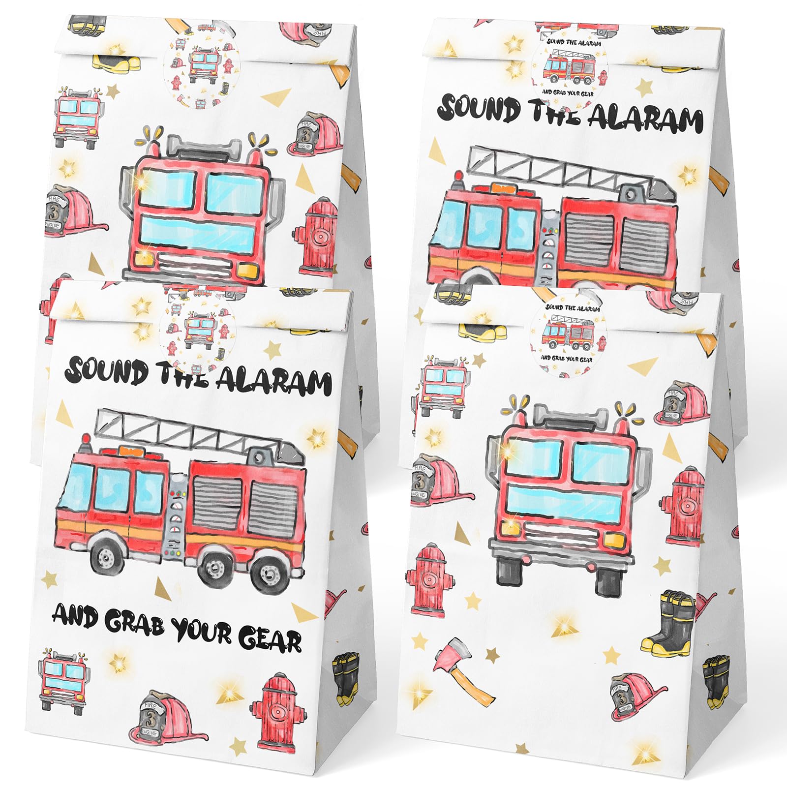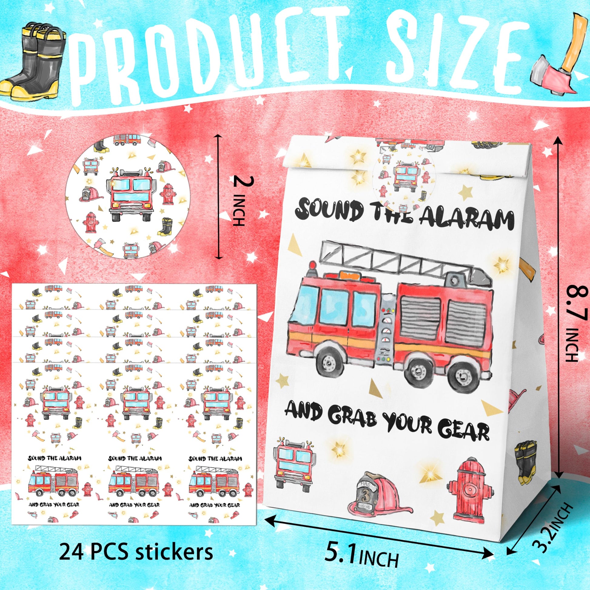 - Q: How many favor bags come in a set and what else is included? A: Each purchase includes a complete set of 24 firetruck favor bags, along with coordinating stickers to enhance the festive spirit of your party favors.