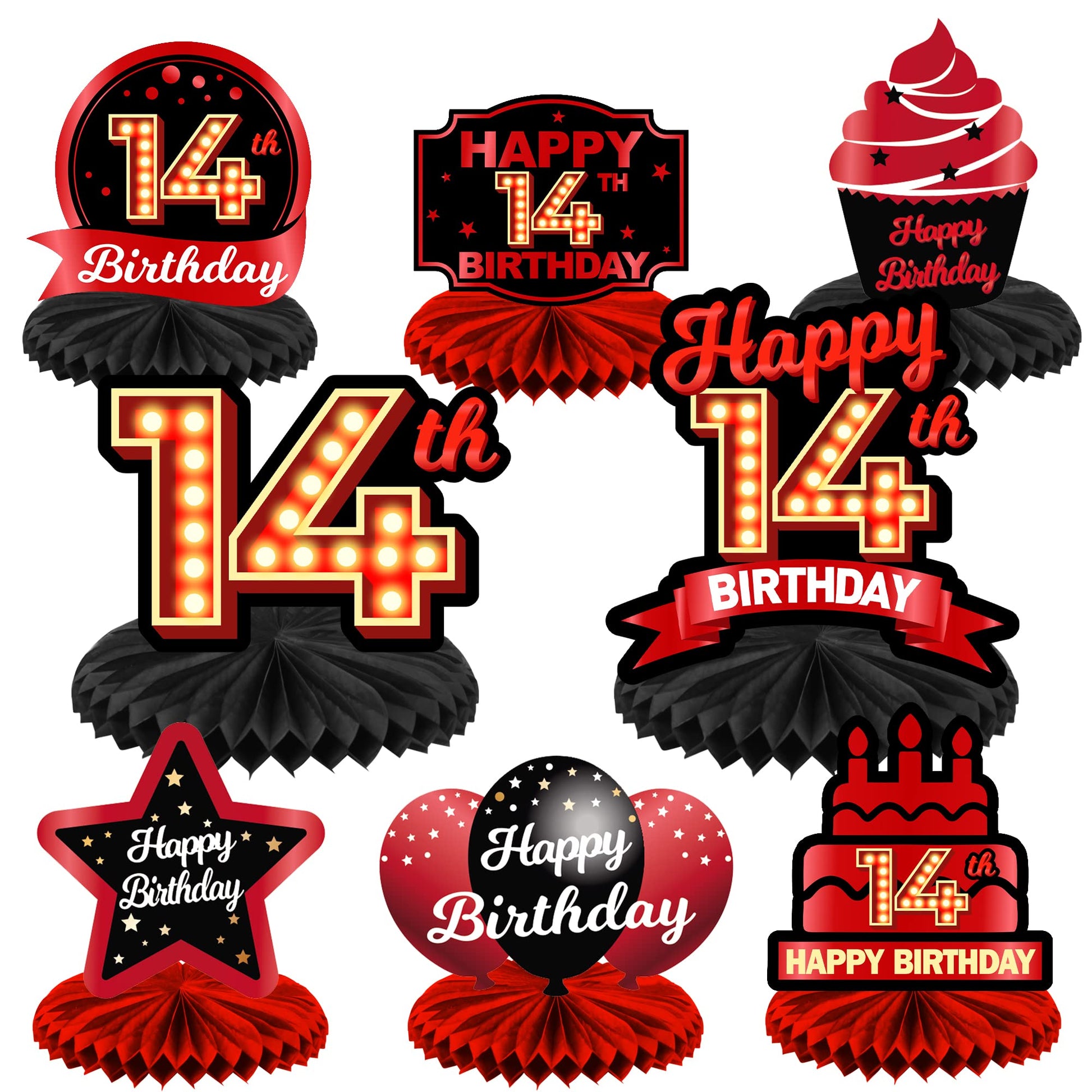 View compareHappy 14Th Birthday Red And Black Table Honeycomb Centerpieces Balloons Theme Decor Table Decorations Table Toppers For Girls Women Princess 14 Years Old Birthday Party Bday Supplies Background Gold