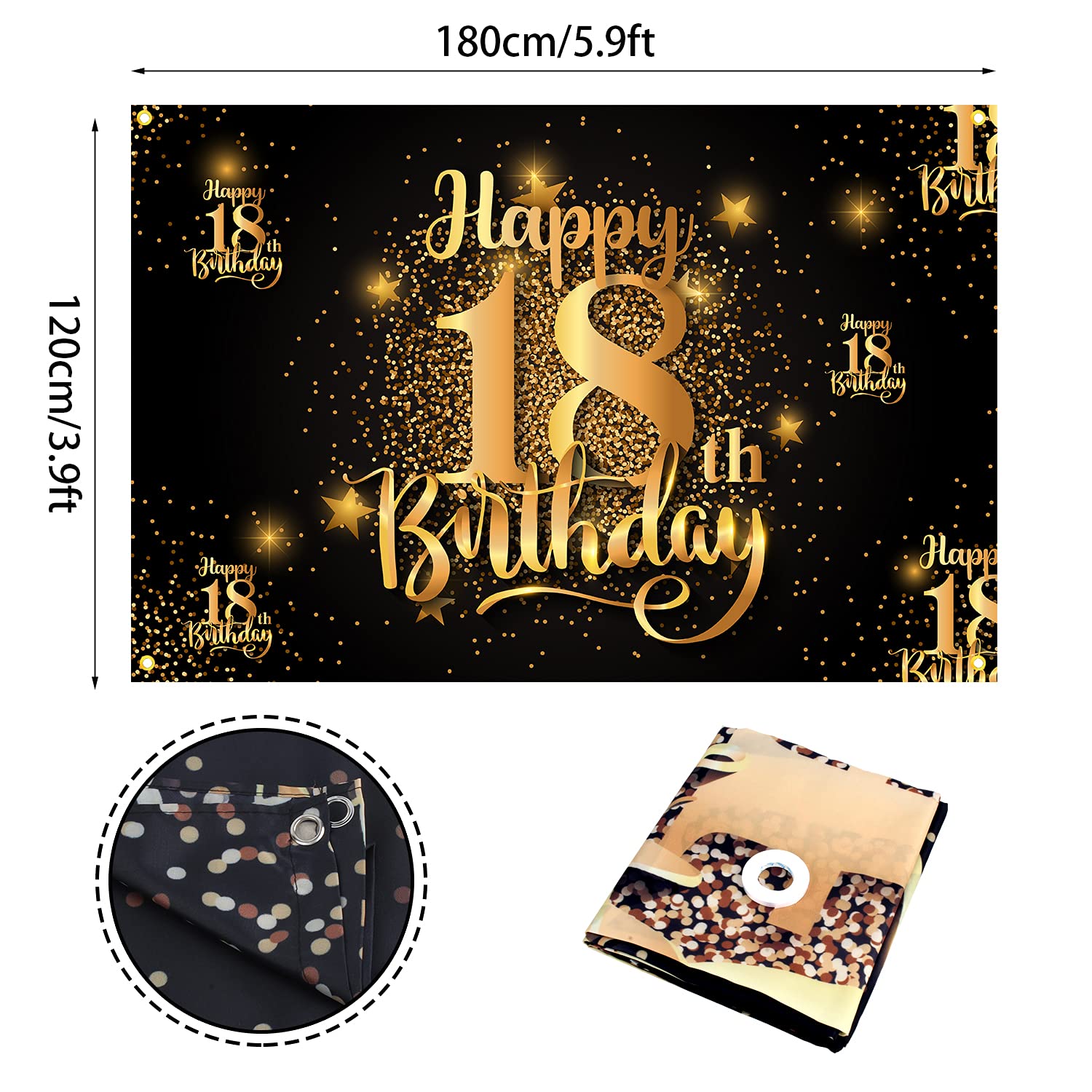 - Q: What are the dimensions of the Happy 18th Birthday Backdrop Banner? A: The backdrop banner measures approximately 6 x 4 feet (1.8 x 1.2 meters), making it a large and eye-catching decoration for your birthday party.
