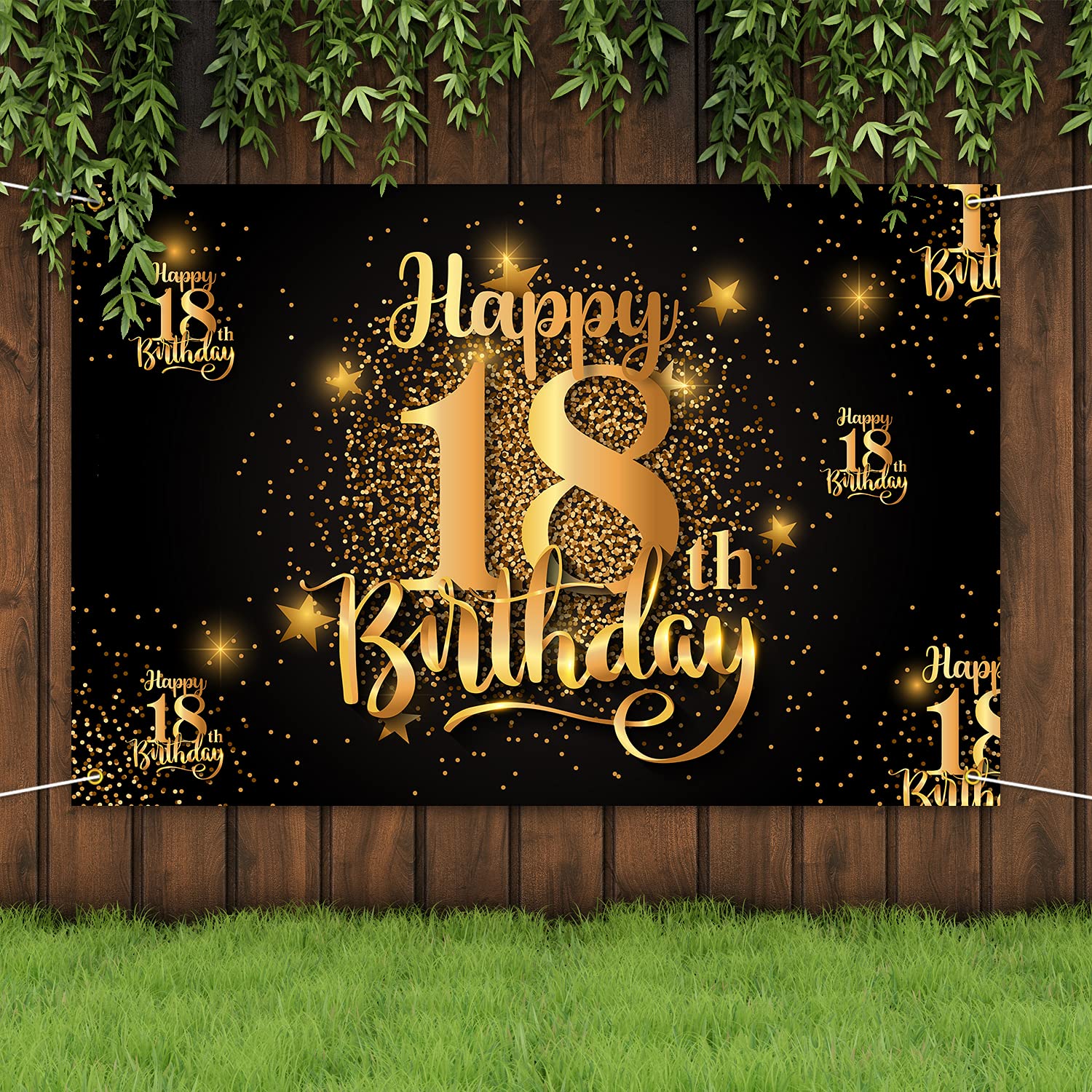 View compareHappy 18Th Birthday Backdrop Banner Step And Repeat 18 Years Old Background Decorations For Women Men Her Him Photography Party Supplies Glitter Black Gold