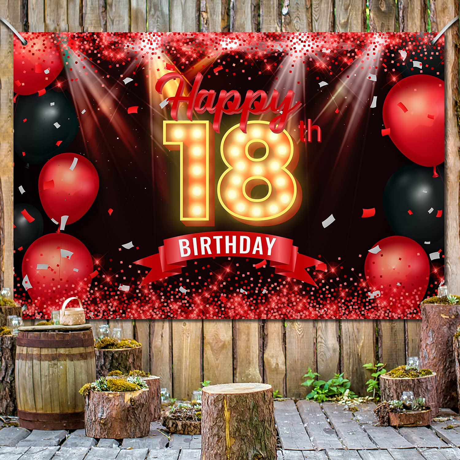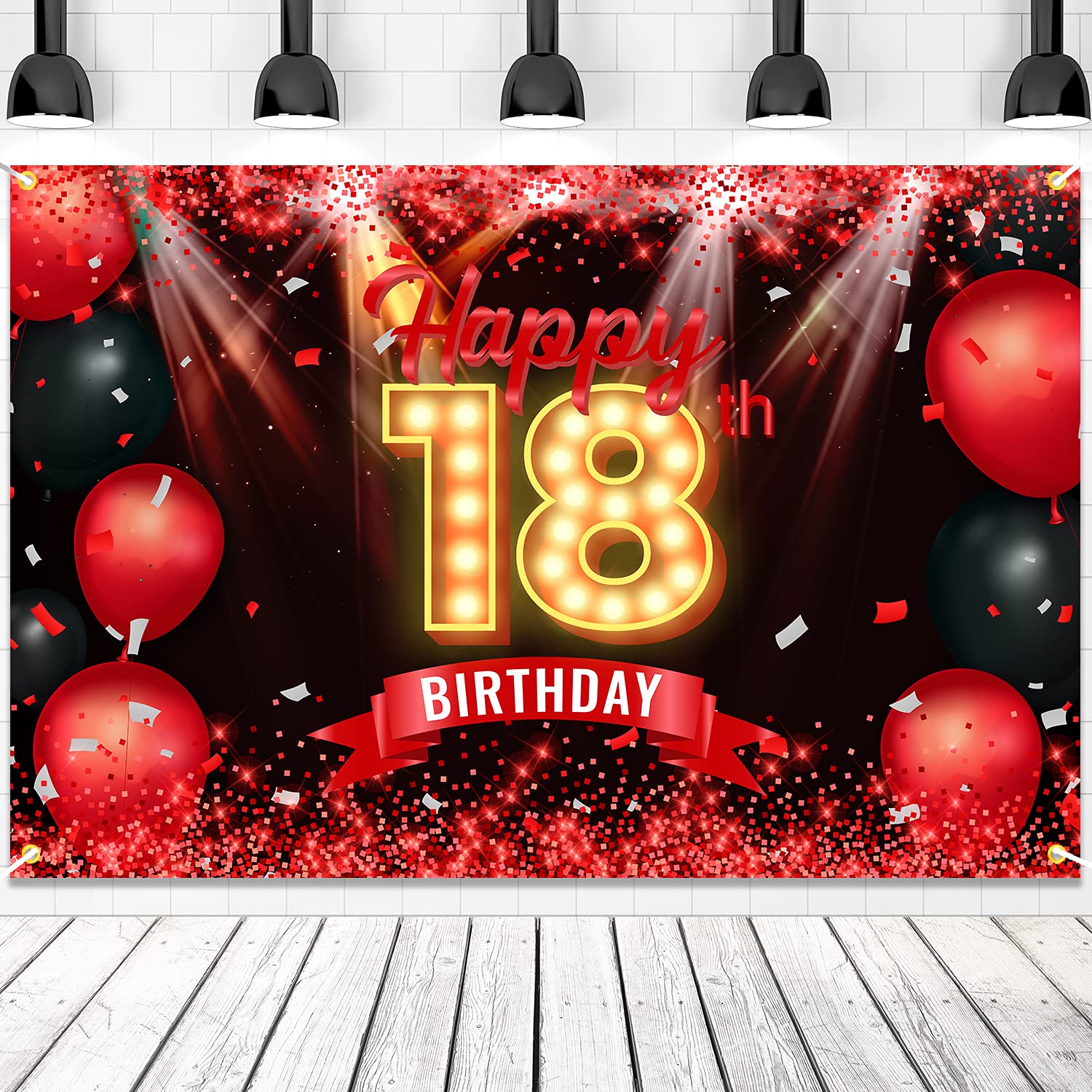 View compareHappy 18Th Birthday Banner Backdrop Red And Black 18 Years Old Background Bday Decorations For Girls Boys Photography Party Supplies Glitter