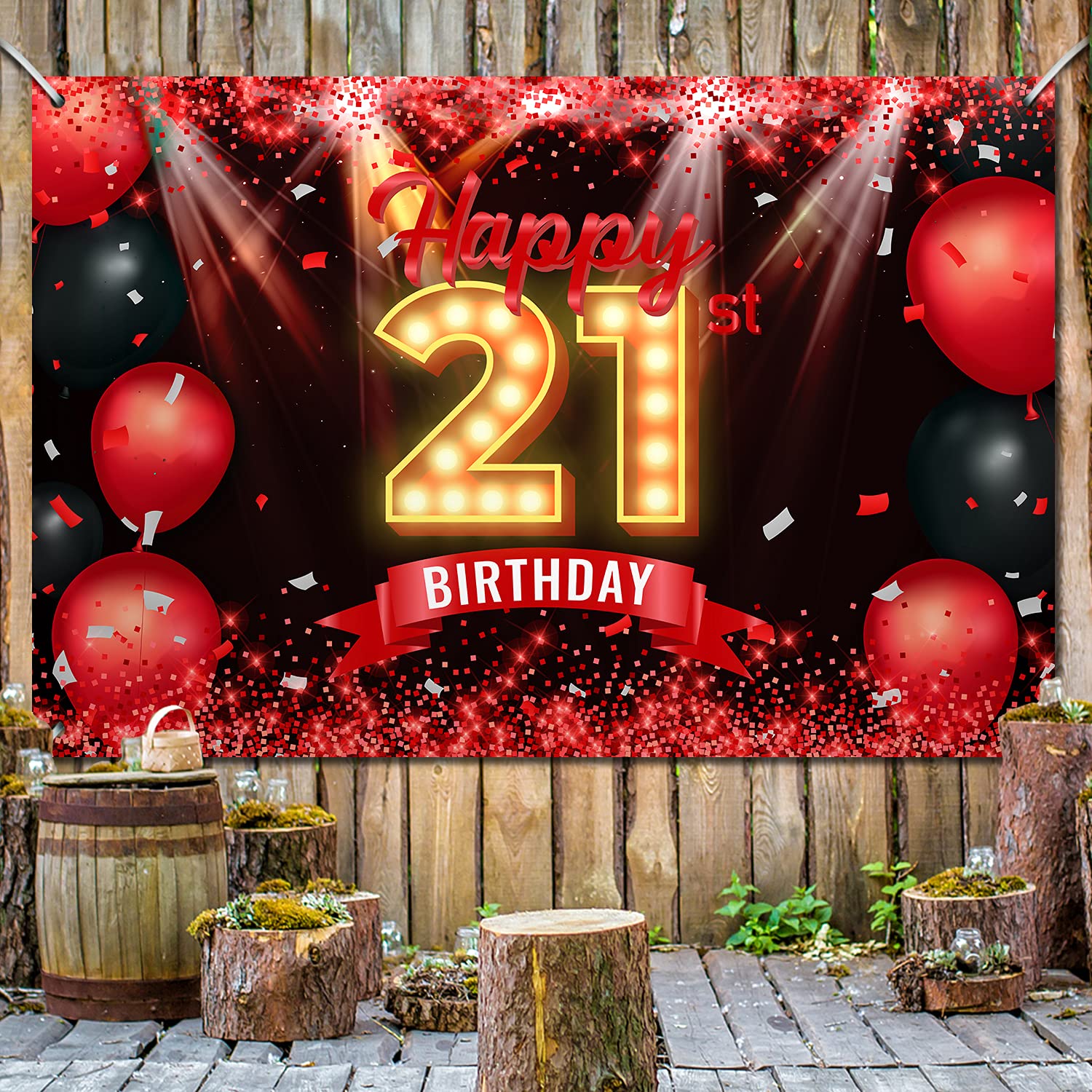 View compareHappy 21St Birthday Banner Backdrop Red And Black 21 Years Old Background Bday Decorations For Girls Boys Women Men Photography Party Supplies Glitter