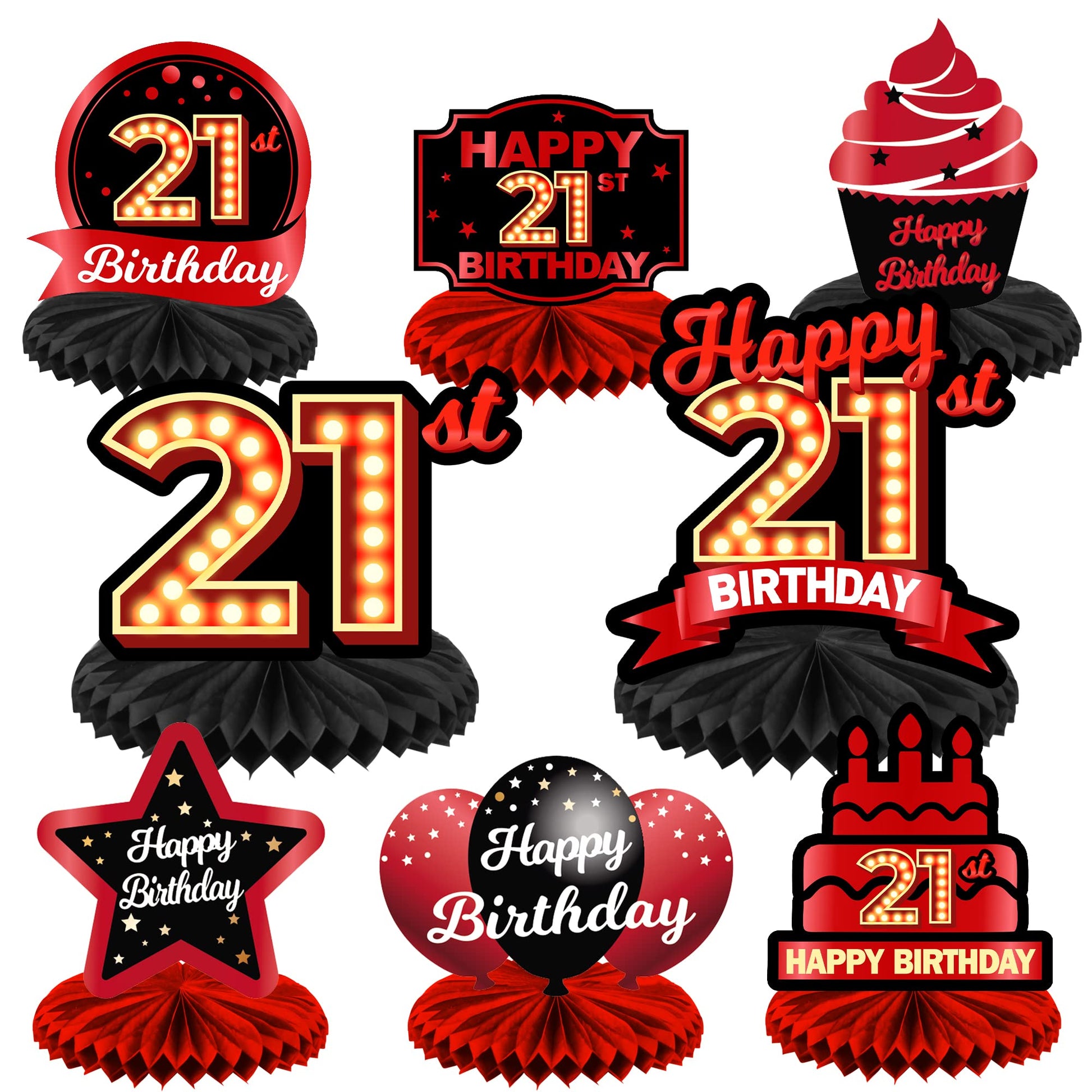 View compareHappy 21St Birthday Red And Black Table Honeycomb Centerpieces Balloons Theme Decor Table Decorations Table Toppers For Girls Women Princess 21 Years Old Birthday Party Bday Supplies Background Gold