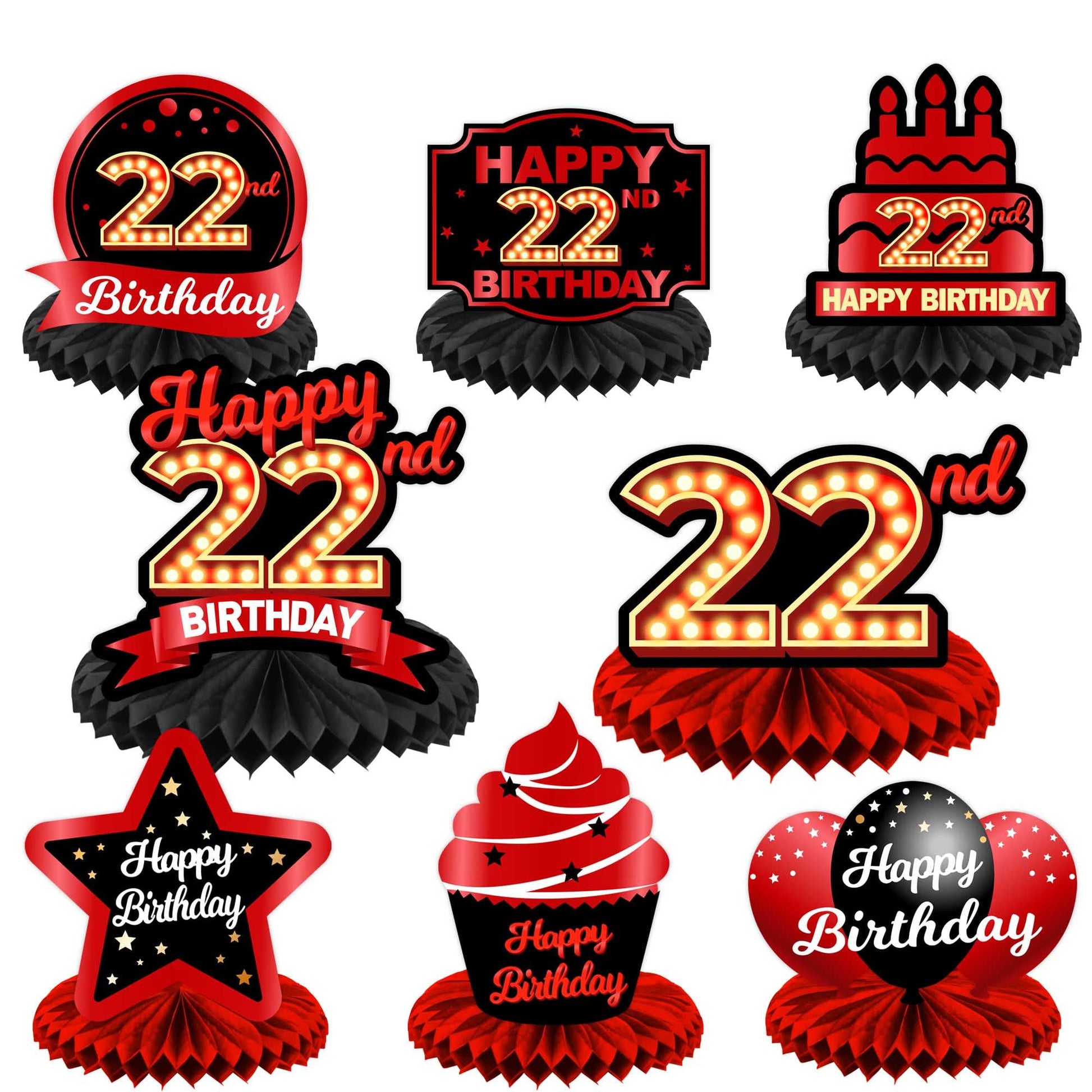 Happy 22Nd Birthday Red And Black Table Honeycomb Centerpieces Balloons Theme Decor Table Decorations Table Toppers For Girls Women Princess 22 Years Old Birthday Party Bday Supplies Background Gold