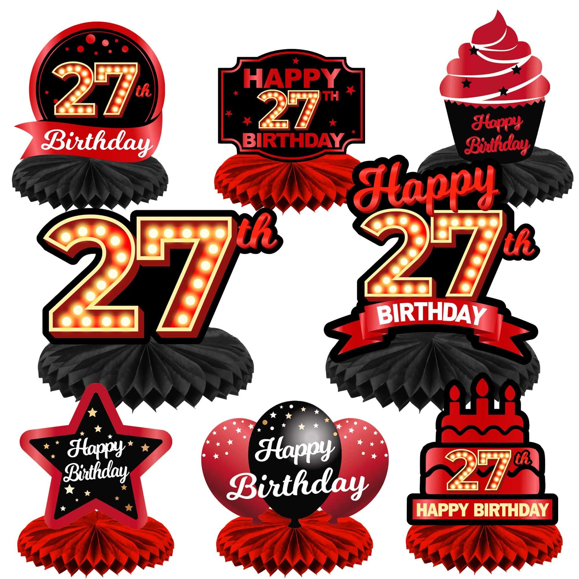 View compareHappy 27Th Birthday Red And Black Table Honeycomb Centerpieces Balloons Theme Decor Table Decorations Table Toppers For Girls Women Princess 27 Years Old Birthday Party Bday Supplies Background Gold