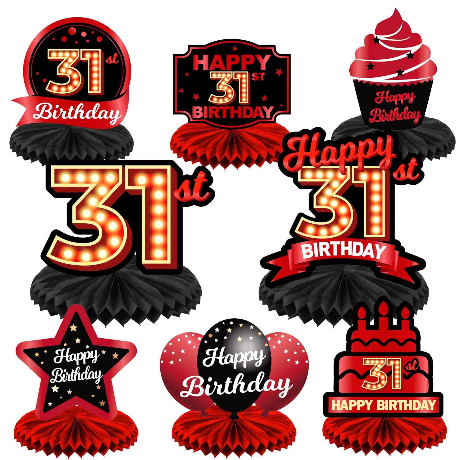 View compareHappy 31St Birthday Red And Black Table Honeycomb Centerpieces Balloons Theme Decor Table Decorations Table Toppers For Girls Women Princess 31 Years Old Birthday Party Bday Supplies Background Gold