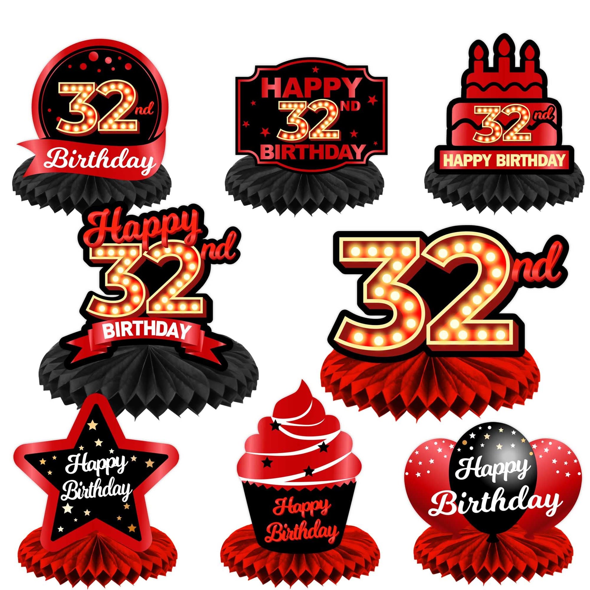View compareHappy 32Nd Birthday Red And Black Table Honeycomb Centerpieces Balloons Theme Decor Table Decorations Table Toppers For Girls Women Princess 32 Years Old Birthday Party Bday Supplies Background Gold