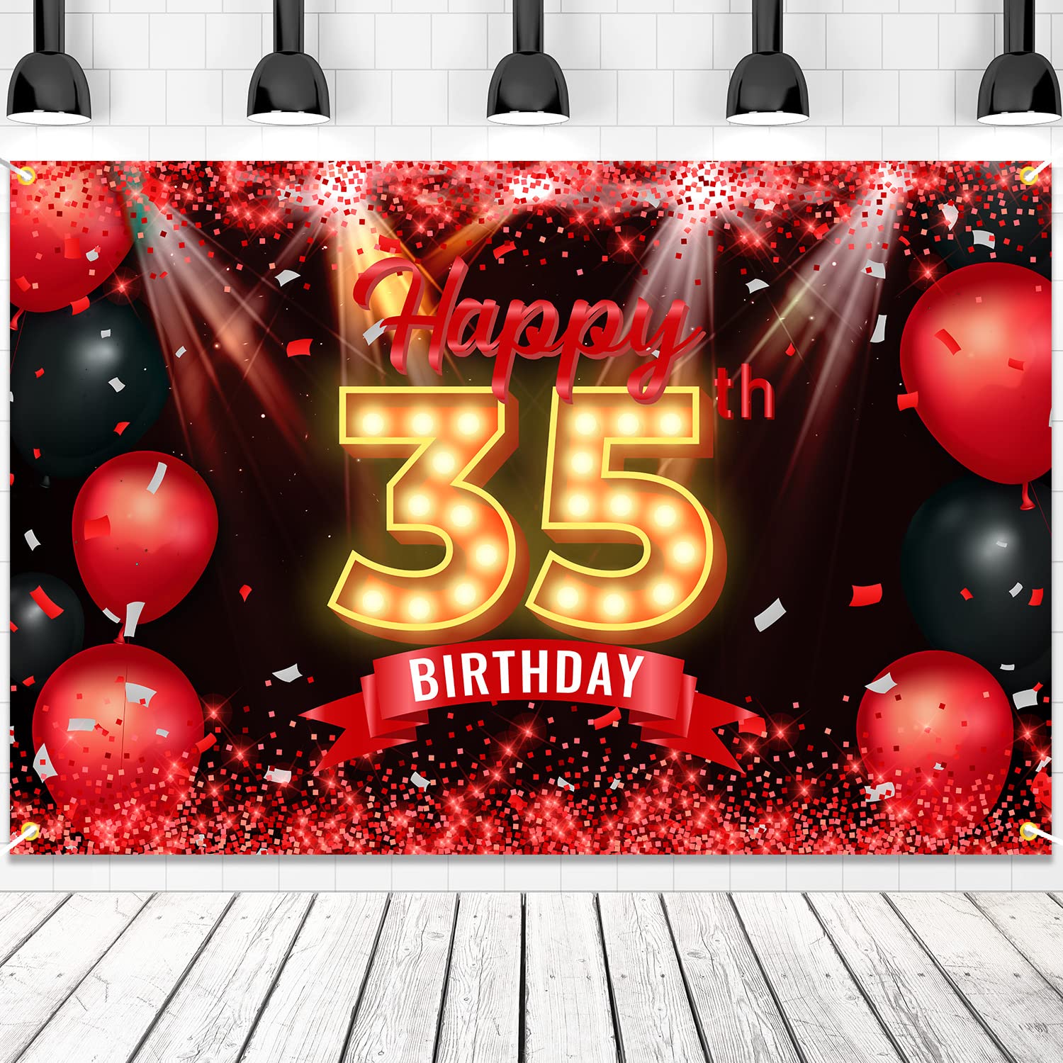 View compareHappy 35Th Birthday Banner Backdrop Red And Black 35 Years Old Background Bday Decorations For Women Men Photography Party Supplies Glitter