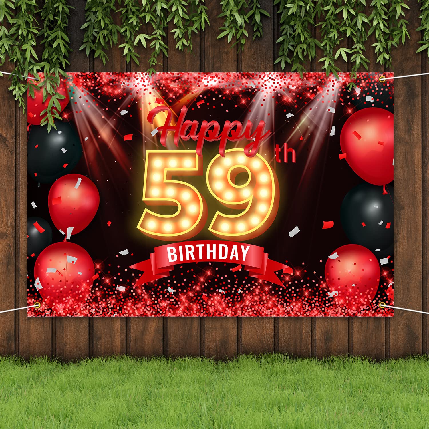 - Q: What are the dimensions of the Happy 59th Birthday Banner? A: The Happy 59th Birthday Banner measures approximately 5.9 x 3.9 feet (1.8 x 1.2 meters), making it a large backdrop ideal for decorating your birthday party.