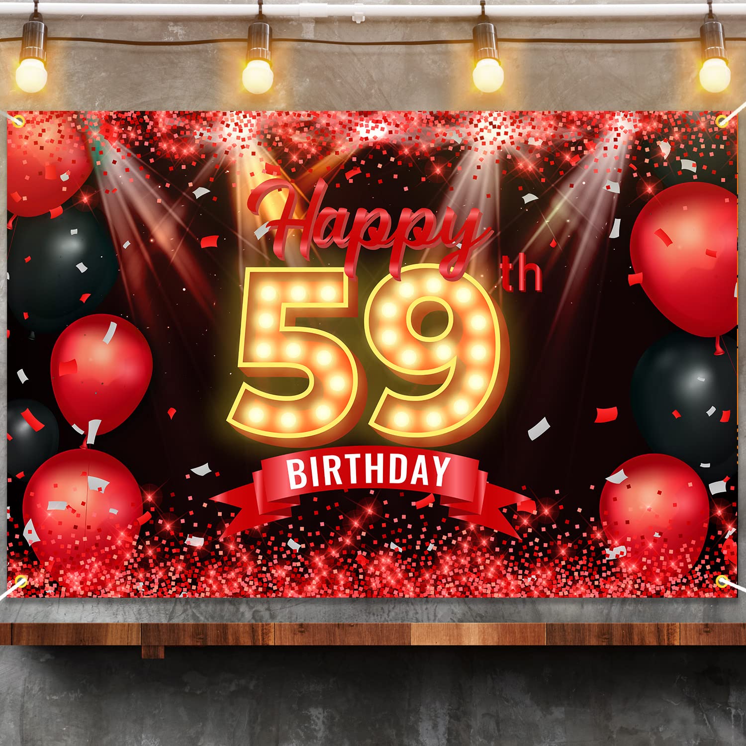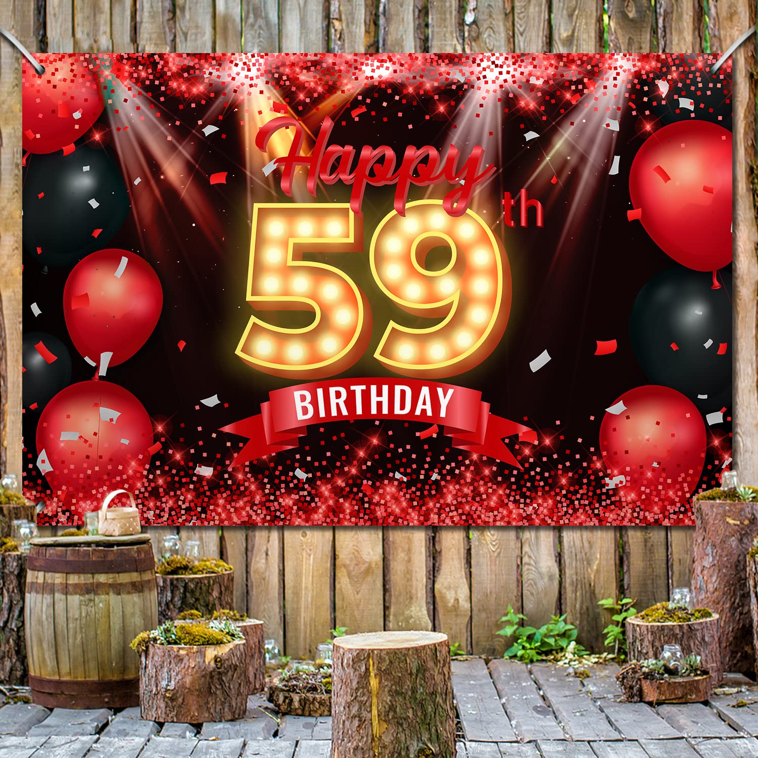 View compareHappy 59Th Birthday Banner Backdrop Red And Black 59 Years Old Background Bday Decorations For Women Men Photography Party Supplies Glitter