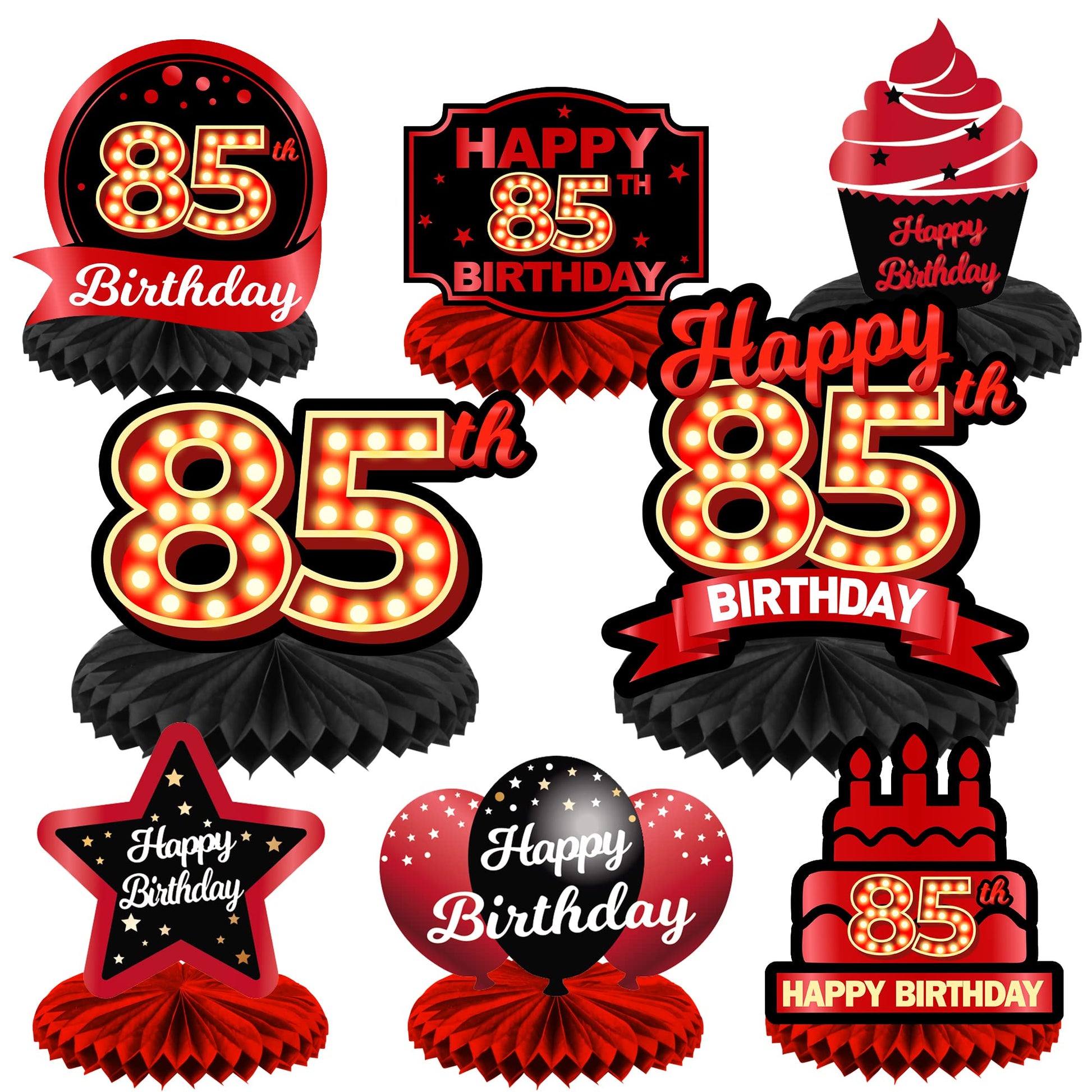 View compareHappy 85Th Birthday Red And Black Table Honeycomb Centerpieces Balloons Theme Decor Table Decorations Table Toppers For Girls Women Princess 85 Years Old Birthday Party Bday Supplies Background Gold