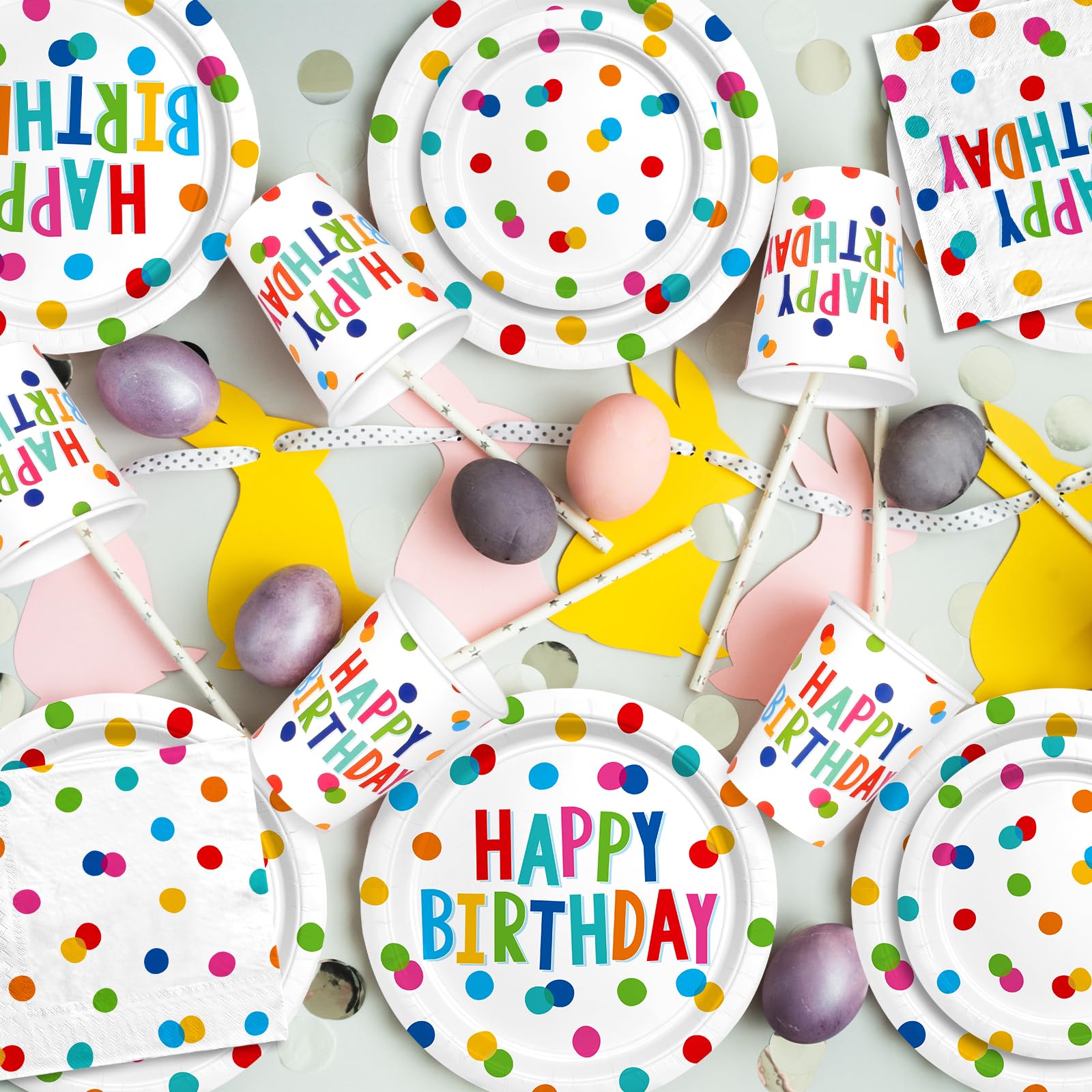 Happy Birthday Decorations: Kids Birthday Party Supplies with Dots Design - Includes Happy Birthday Plates and Napkins, Dispos