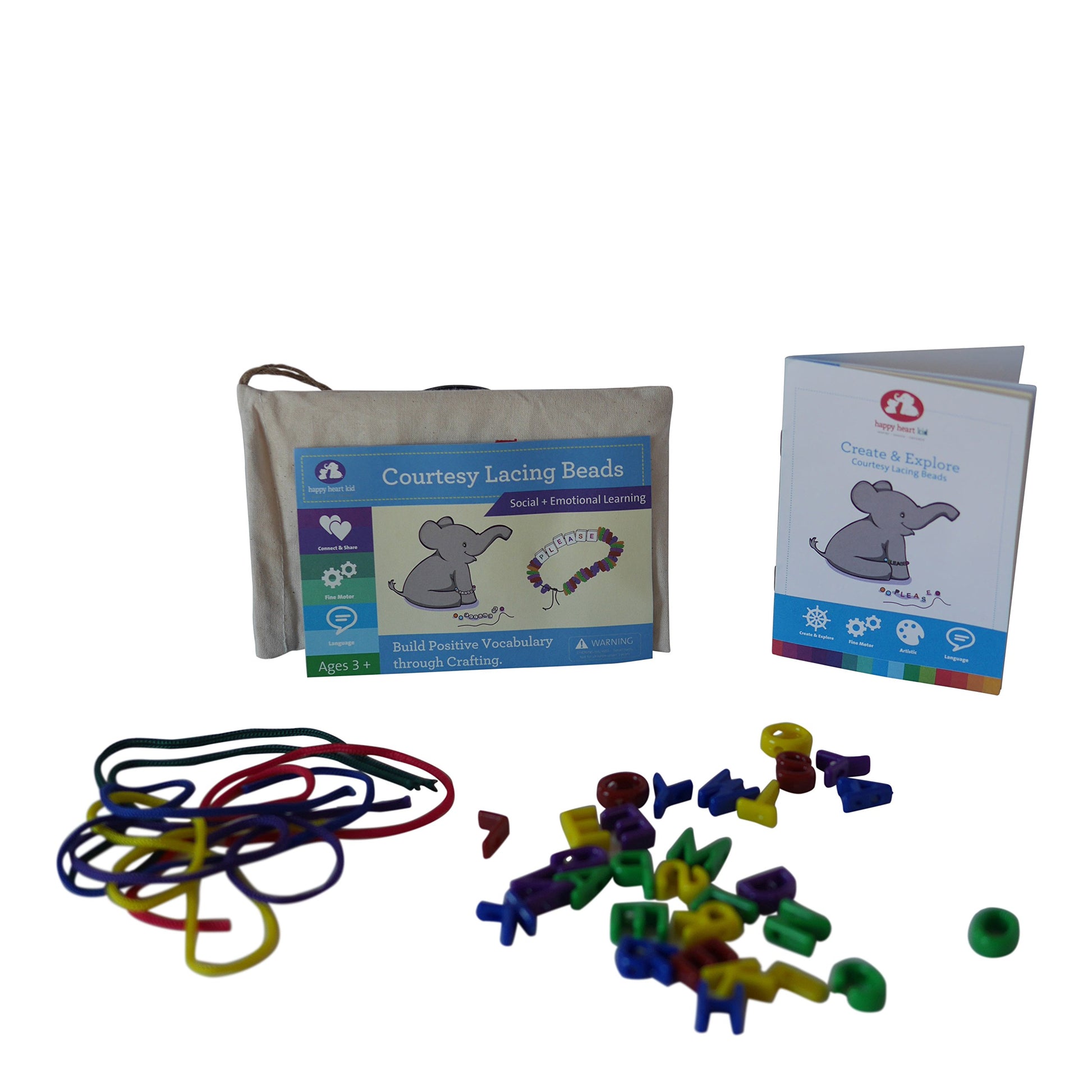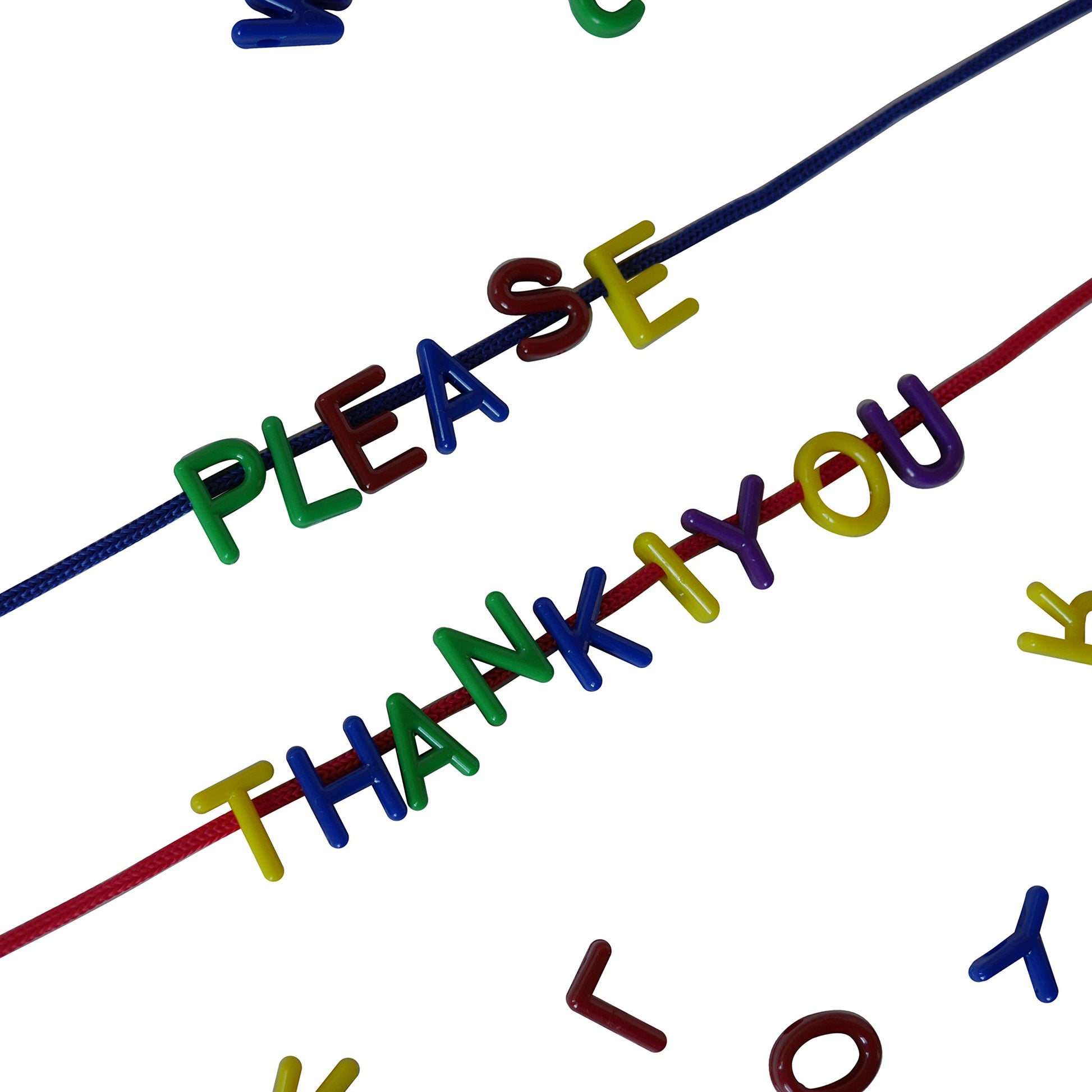 Learn polite responses with this fun fine motor activity. Strings, pony beads and alphabets will be provided for your child to learn to spell and create 5 bracelets. Polite words include: 'Please', 'welcome', 'thank you', 'sorry' and 'excuse me'. These bracelets can also be worn as fun reminders. Skill developed: Language fine motor artistic social emotional safe and appropriate for children from 3 to 8 years of age add the courtesy bracelet kit to your cart today, and lay the foundation better behavior and a polite child.