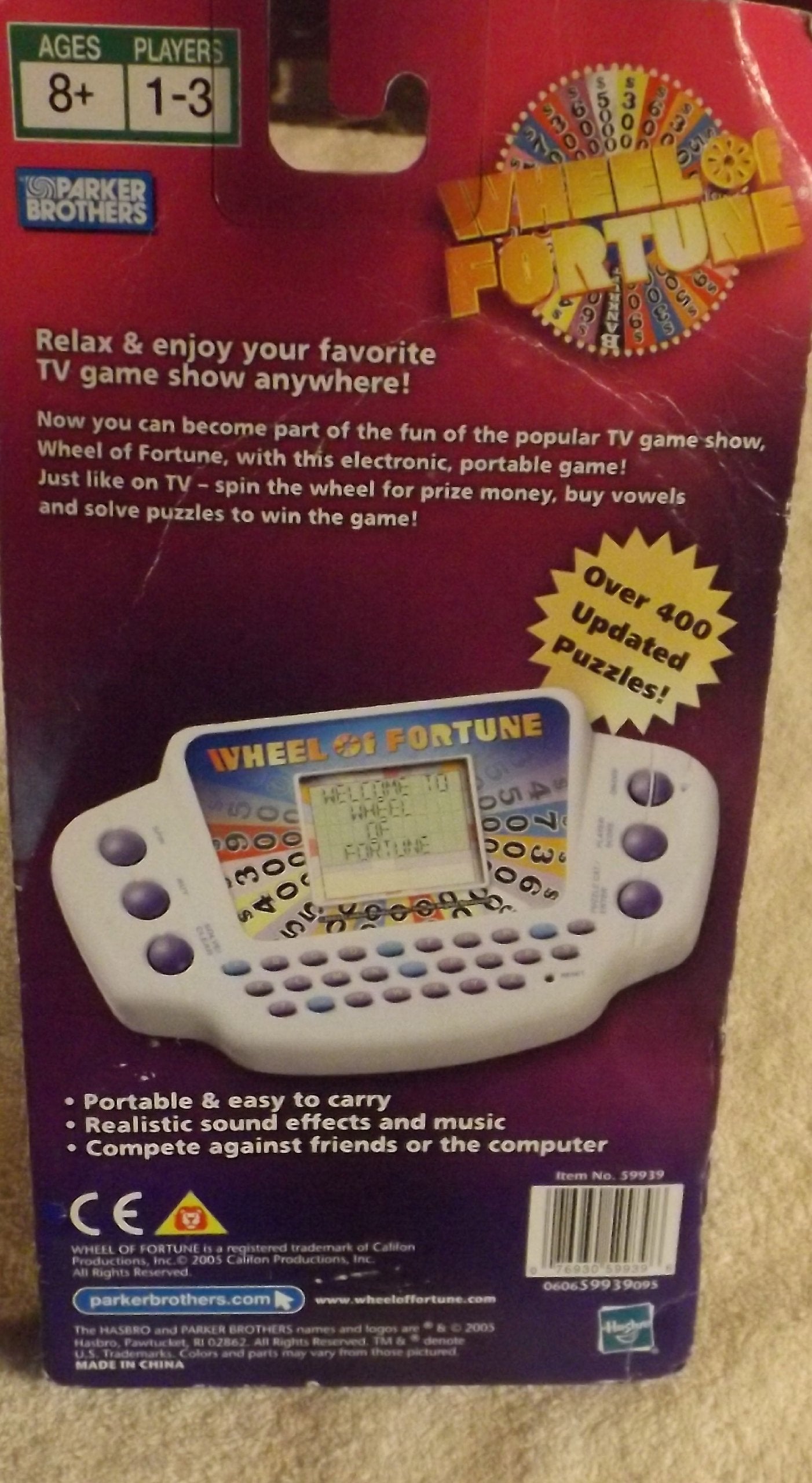 - Q: What age group is the Hasbro Gaming Wheel of Fortune Handheld Electronic Game suitable for? A: This handheld game is designed for players aged 8 and up, making it a fun choice for both kids and adults.