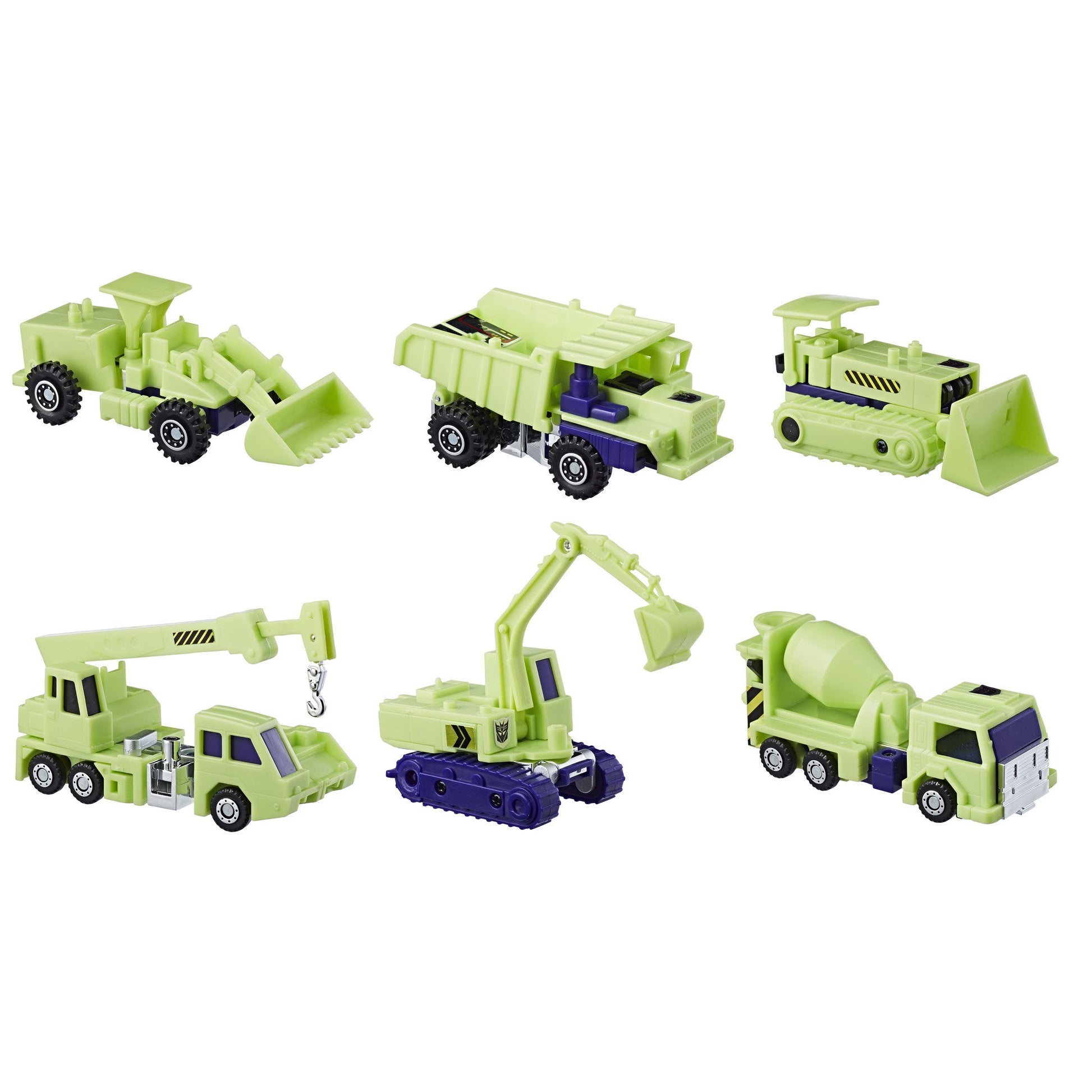 - Q: Can the Constructicon figures transform, and how many figures are included in the pack? A: Yes, the Constructicon figures can transform between construction vehicles and robots. The pack includes six 4-inch figures: Scrapper, Constructicon Scavenger, Bonecrusher, Constructicon Hook, Long Haul, and Mixmaster, which combine to form a 9-inch Devastator super robot.