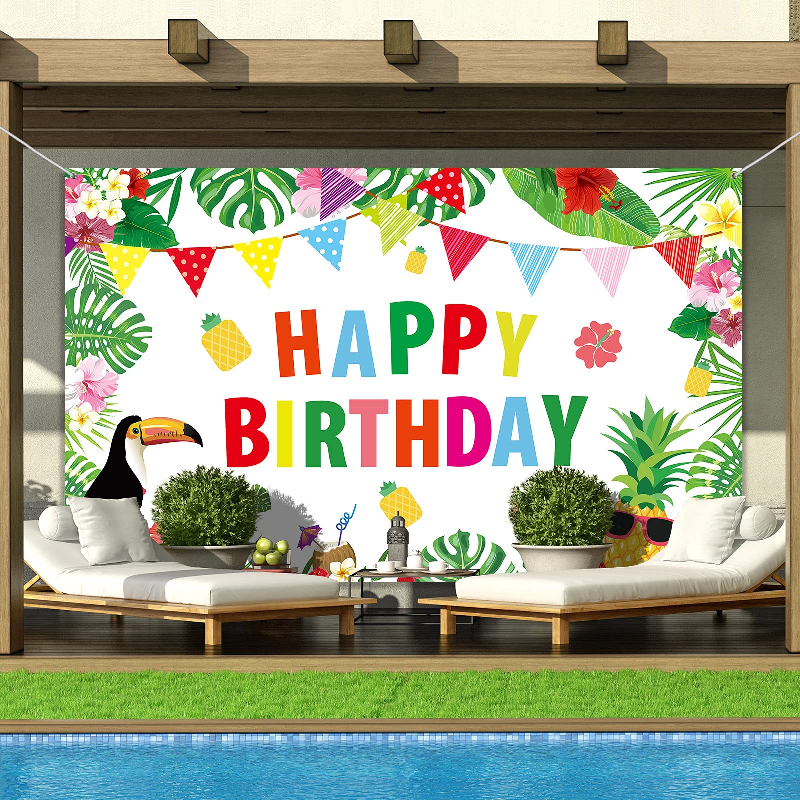 Hawaiian Luau birthday party backdrop tropical theme birthday party supplies decorations photography background banner photo booth cake table decor