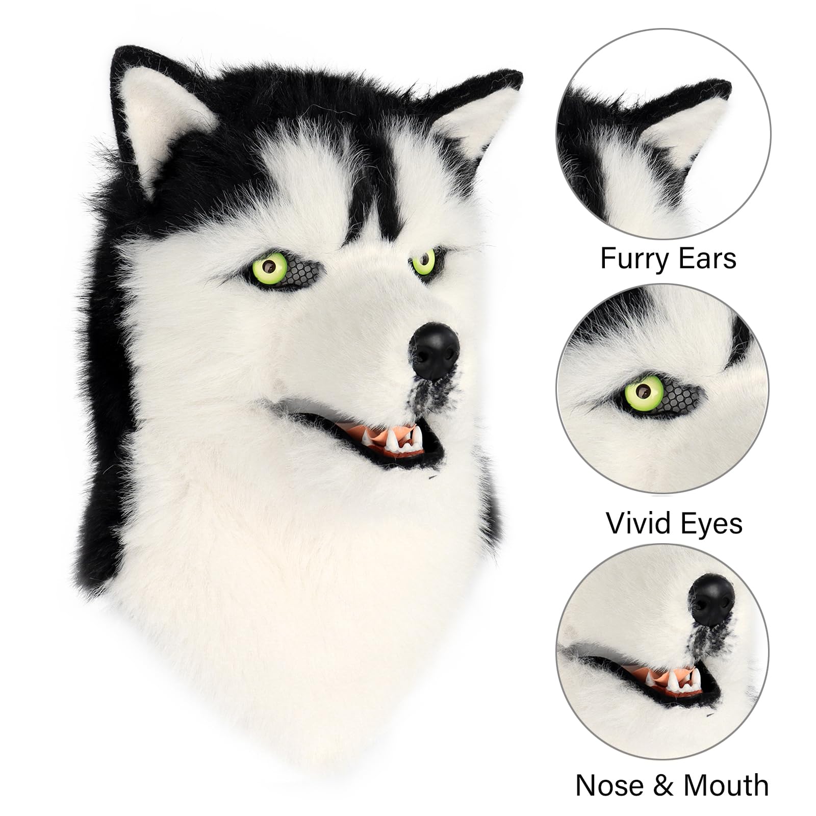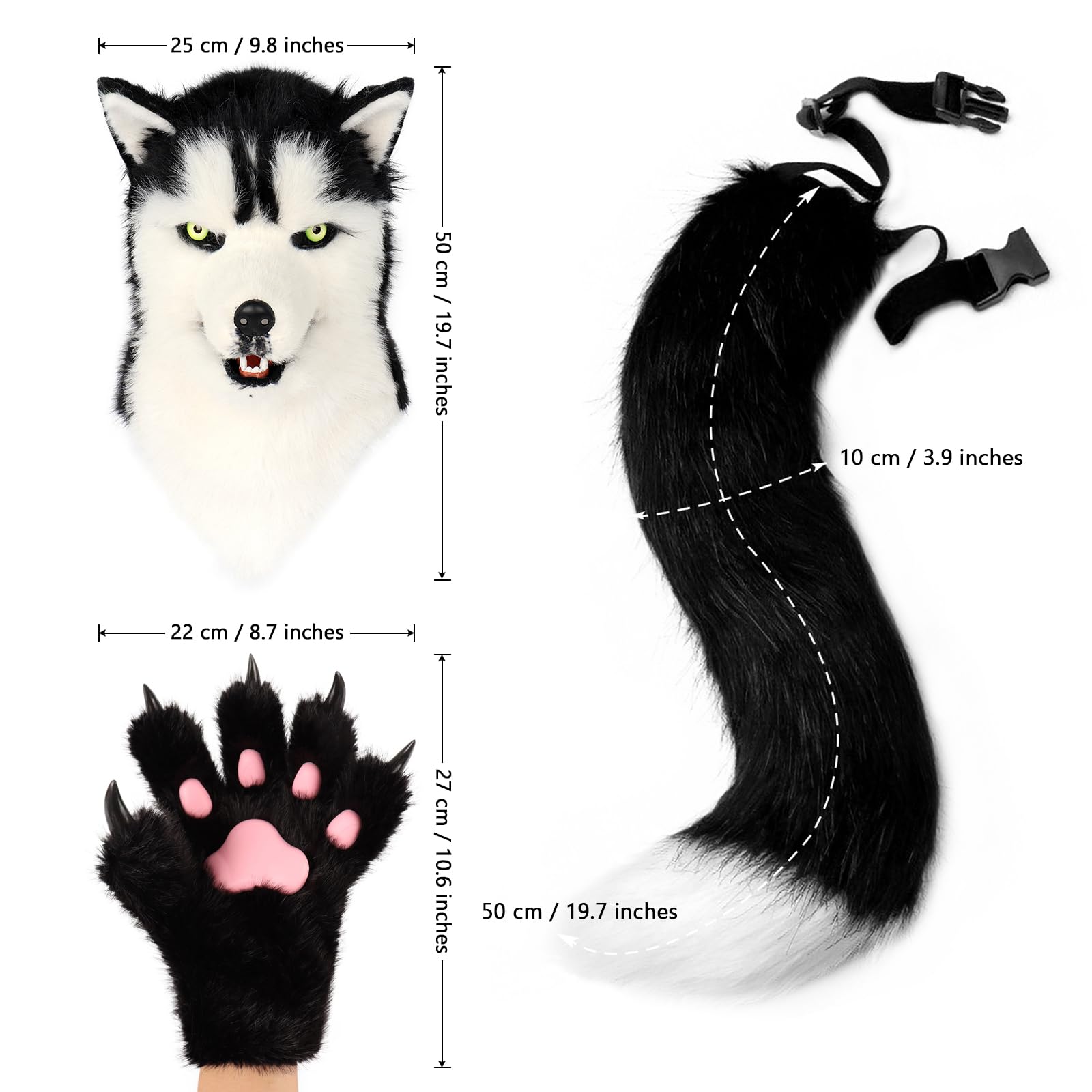 Hbbhml Animal Dog Head Mask Novelty Plush Tail Claw Paw Mittens Gloves Set Halloween Party Masquerade Costume Cosplay Husky